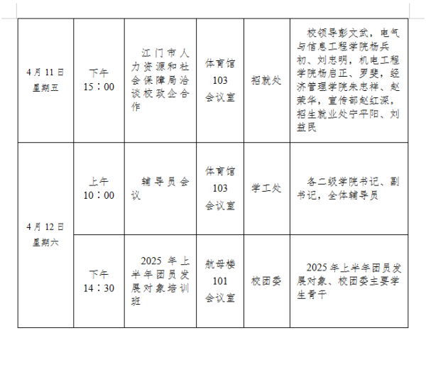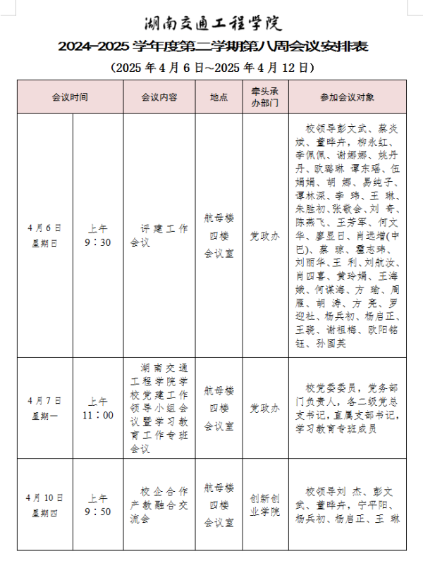 新葡萄8883官网AMG官网2024-2025学年度第二学期第八周会议安排表