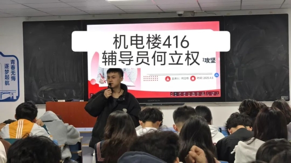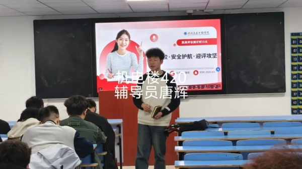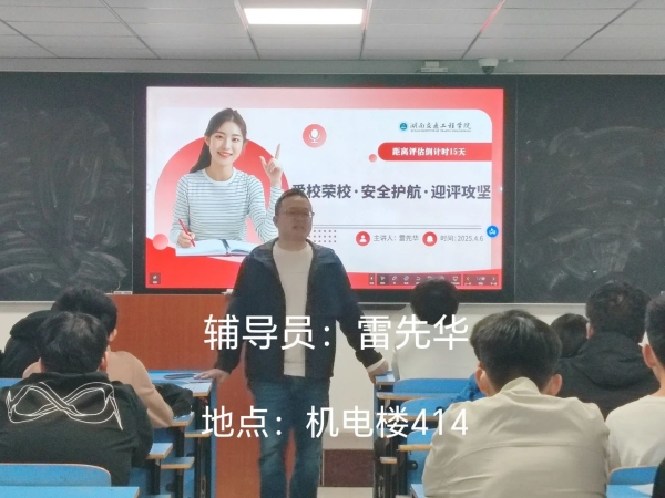 2025年4月6日晚19:00,机电工程学院在机电楼教室组织全体班级开展“爱校荣校·安全护航·迎评攻坚”主题班会。此次班会由各班级辅导员担任主讲,旨在全面部署本科评估冲刺阶段的各项工作,进一步凝聚师生力量,助力学校顺利通过本科评估 。