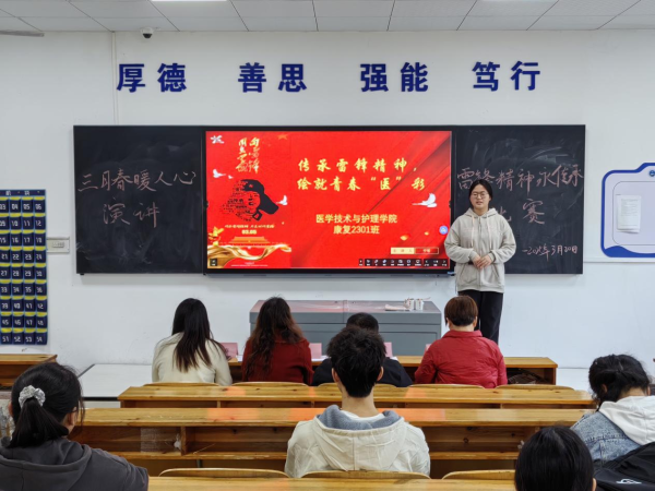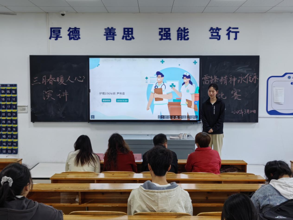 为传承雷锋精神,厚植医学人文情怀。2025年3月20日,医学技术与护理学院于教学楼201举行“全三月春风暖人心,雷锋精神永传承”主题演讲比赛。本次比赛评委有党总支副书记兼团总支书记刘建军、副院长廖小丽、教务干事老师张怡春、学生干事老师陈文蓉。