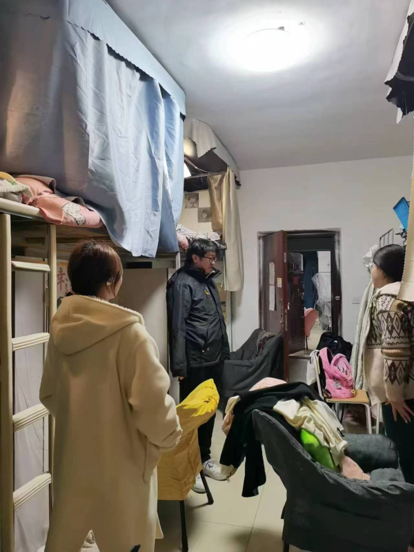 由学院书记领导、辅导员及学生干部联合组成专项检查组,深入宿舍开展排查。逐间检查宿舍用电情况,并向学生普及安全知识,对违规电器进行登记并现场教育。