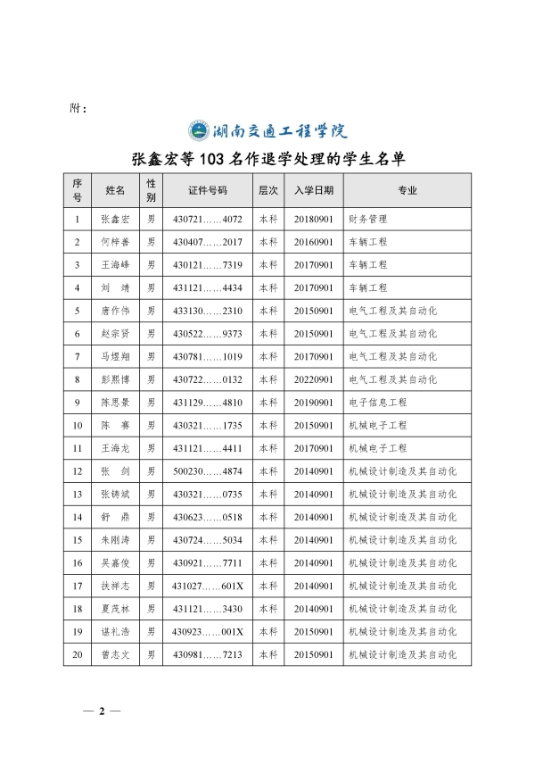 关于对张鑫宏等103名保留学籍学生作退学或取消入学资格处理的决定(湘交院学管〔2025〕19号)