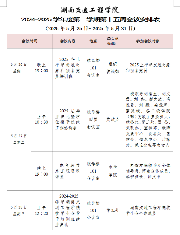 新葡萄8883官网AMG官网2024-2025学年度第一学期第十五周会议安排表