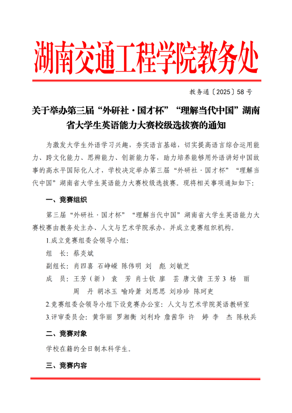 关于举办第三届“外研社·国才杯”“理解当代中国”湖南省大学生英语能力大赛校级选拔赛的通知
