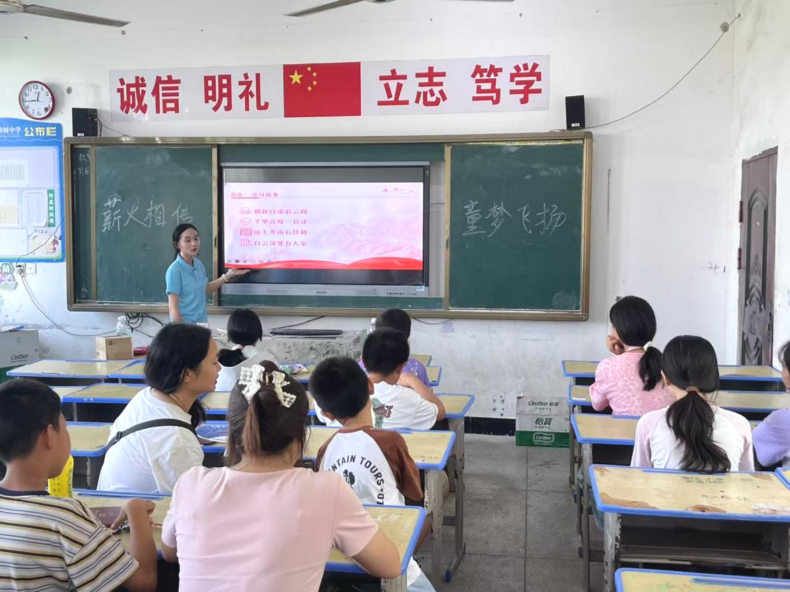 通讯员:危乐辉 刘佳玲 龚萱 )盛夏时节,樟树乡小学的校园里,翠竹摇曳,绿意盎然,阳光透过树叶洒下斑驳光影。正是在这充满生机的环境中,7月9日,交通运输工程学院“湘交筑梦,七彩领航”志愿服务团队带着满腔热忱,开启了一场别开生面的思想引领与文化传承之旅。