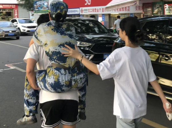 据悉,该生在队列训练过程中突发头晕、四肢无力等症状,周围同学及时发现并上报志愿者。志愿者迅速前往处置,初步判断为低血糖反应。为争取救治时间,志愿者陈柯立即将该生背往校医务室。