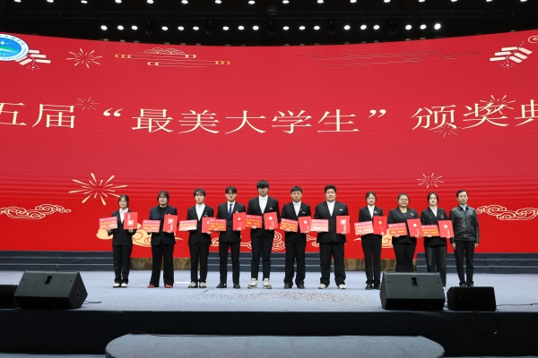 春晖渐至律回,万象伊始更新。12月23日晚,学校在艺术楼隆重举行以“同心筑梦迎元旦,青春献礼耀校园”为主题的第五届“最美大学生”颁奖典礼暨2026年元旦晚会。学校领导、相关职能部门负责人,各二级学院院长、书记及师生代表共2000余人带着对新一年的美好期盼欢聚一堂,共赏视听盛宴。此次表彰晚会以线下精彩表演、线上同步直播的方式举行。