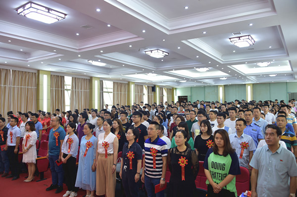 全校中共党员、预备党员、党员发展对象、入党积极分子代表近400人参加了大会。
