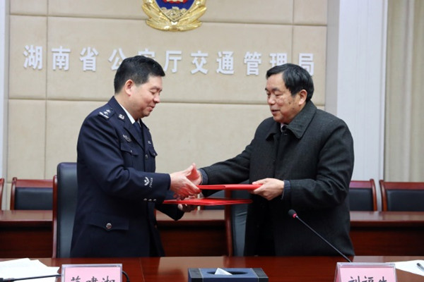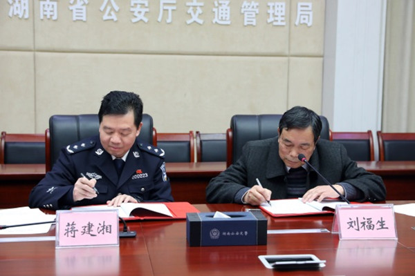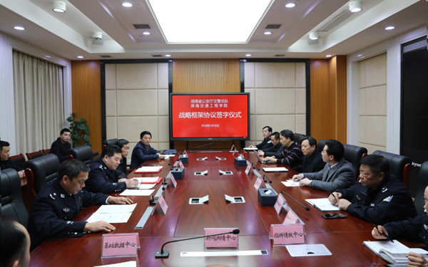 本网讯(记者蔡祥辉、李德才)2018年1月26日下午,正逢长沙迎来首场大雪,在湖南省公安厅交警总队八楼会议室里却春意盎然,新葡萄8883官网AMG官网高科技研究院与湖南省公安厅交警总队合作签字仪式正在这里举行,双方就全面深入合作开展智能交通科技研发工作签订《战略合作框架协议》,决定成立湖南智能交通科技研发中心。