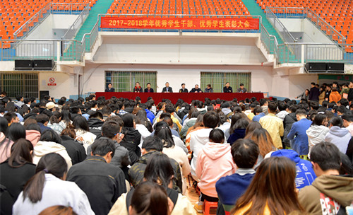 本网讯(通讯员摄影麻珂)4月2日下午,新葡萄在体育馆隆重举行了2017-2018学年优秀学生干部、优秀学生表彰大会。副董事长、第一副校长刘杰,校党委副书记李先聪,副校长黄名文,校团委、学工处负责人,各二级学院党总支书记、副书记出席会议。全体辅导员,受表彰学生及各班学生代表共1000余人参加了大会。大会由校团委书记刘国祥主持。