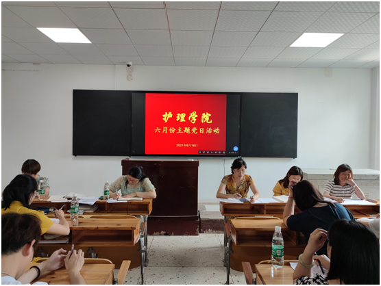 6月16日上午,护理学院党总支在教学楼104教室,举行“六月份主题党日活动”。护理学院党总支书记邓丽、党总支副书记兼团总支书记肖桂香、全体党员参加了本次会议。会议由邓丽书记主持。