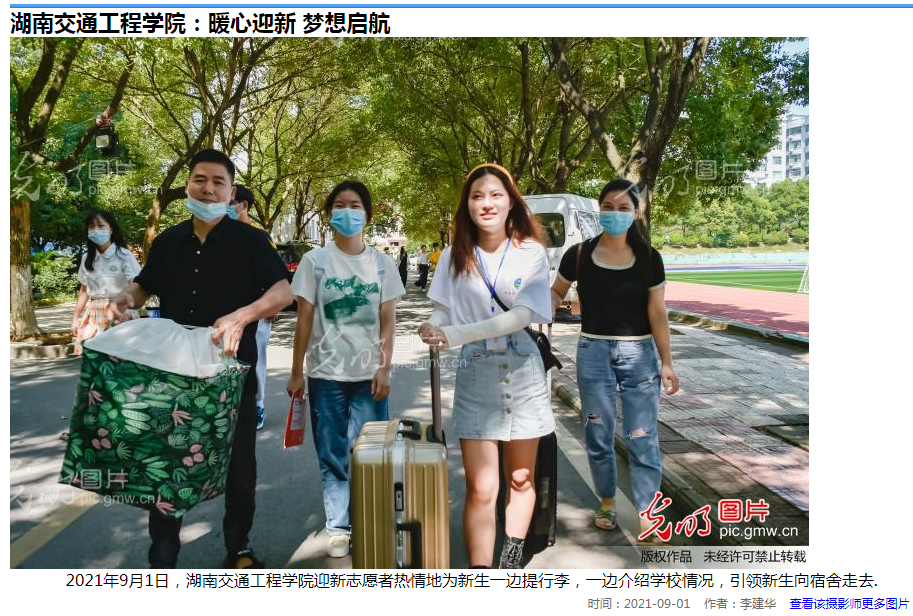 光明网客户端9月1日讯(通讯员 摄影 李建华)又是一年迎新季。9月1日,新葡萄8883官网AMG官网启动2021级新生入学报到模式。全校上下精心准备,迎新工作井然有序。莘莘学子从高中步入大学,怀着对未来的美好向往和憧憬来到学校,开启人生新的征程,在学校老师、学长学姐及志愿者热情周到的服务中很快融入学校大家庭,筑梦启航。
