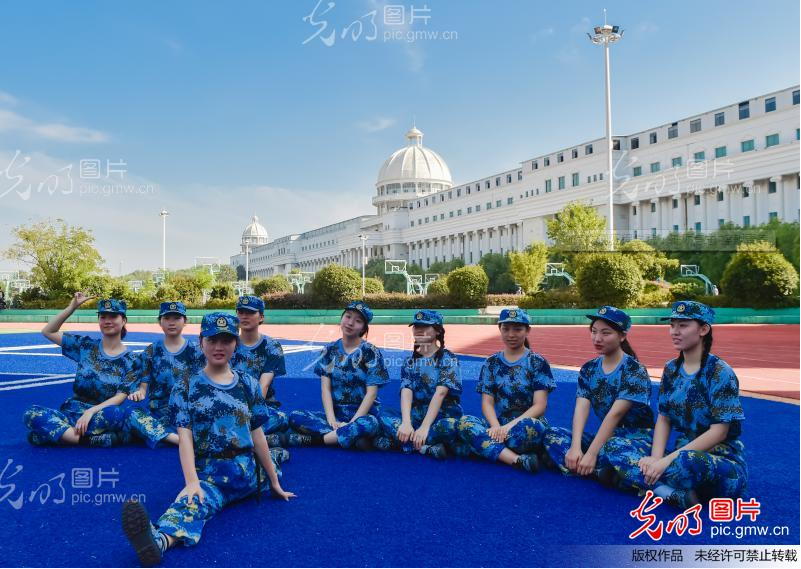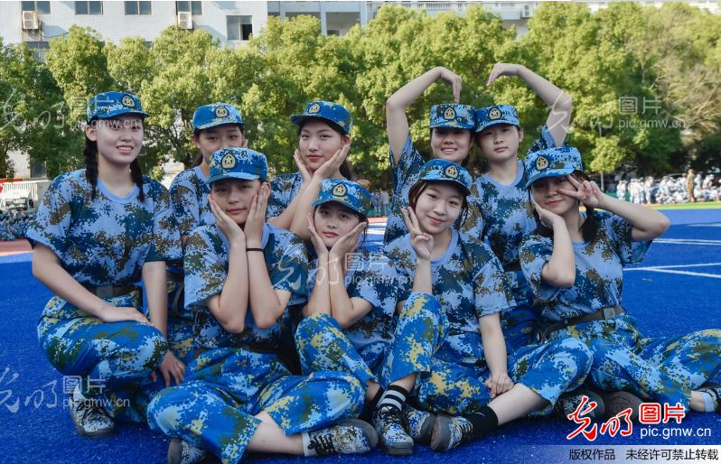 2021年9月3日,新葡萄8883官网AMG官网2021级新生在军训休息时间创意动作留下青春的身影。