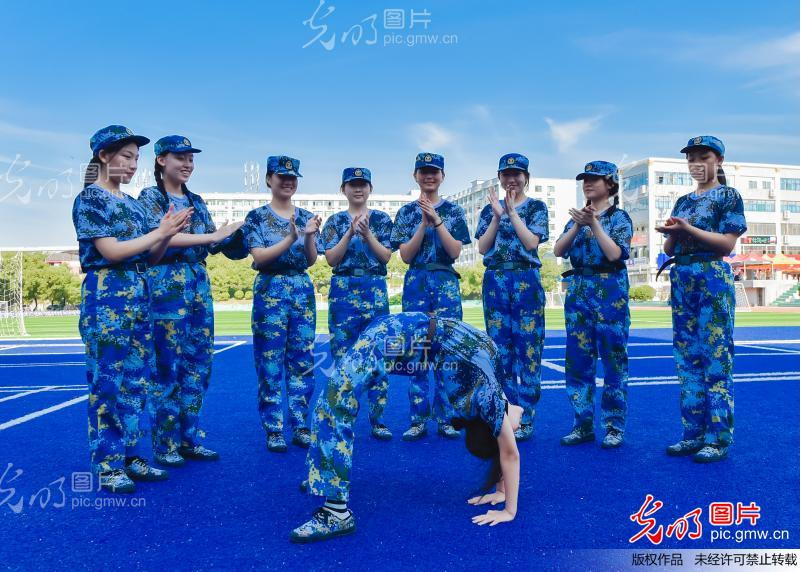 2021年9月3日,新葡萄8883官网AMG官网2021级新生在军训休息时间展示才艺。