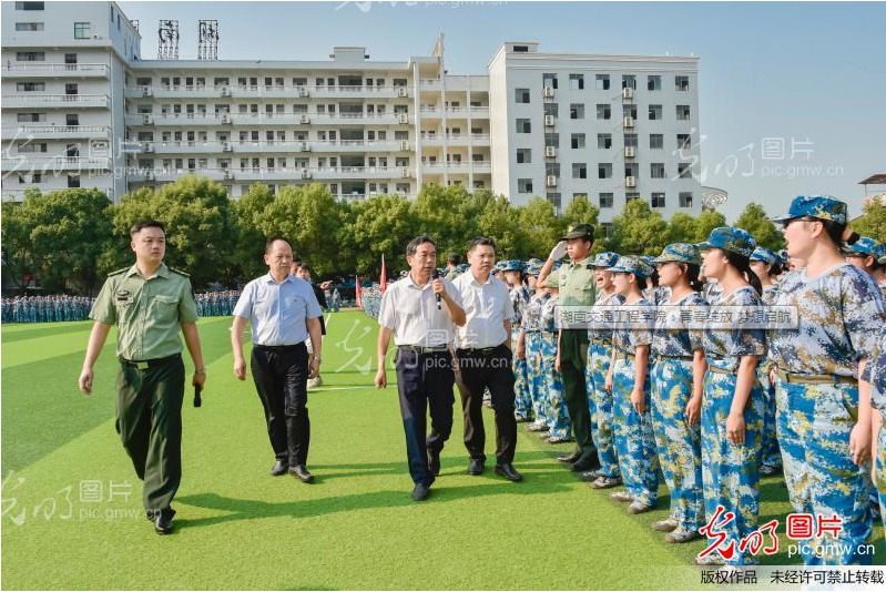 2021年9月17日,新葡萄8883官网AMG官网田径场,伴随着雄壮的进行曲,在副校长彭文武、余孟辉及学工处副处长刘海滨的陪同下,董事长刘福生逐一检阅军训方阵。响亮的口号声气势如虹,久久回荡。