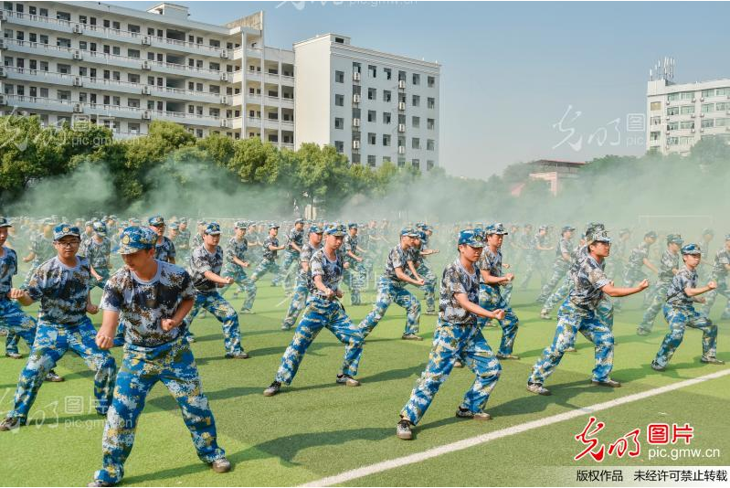 2021年9月17日,新葡萄8883官网AMG官网军训成果汇报表演现场,800人组成的擒敌拳表演方队拳脚敏捷,沉着有力。刚劲勇武的拳腿,横踹侧踢、抱拳立定等动作行如流水,赢得热烈喝彩。