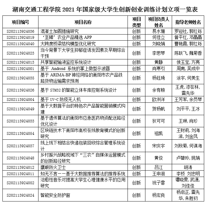本网讯(通讯员 王琳 方亮)2021年6月,新葡萄上报湖南省教育厅2021年省级大学生创新创业训练计划项目55项。其中,创新训练项目52项,创业训练项目3项。根据湖南省教育厅《关于公布 2021 年度湖南省大学生创新创业训练计划项目名单的通知》(湘教通[2021]197号)文件,新葡萄大学生创新创业训练计划项目全部获批省级立项。创新葡萄本科办学以来该项目省级立项数目新高。省级立项数较2018年、2019年和2020年分别增加了40项、38项和22项。