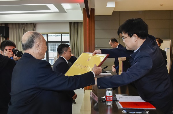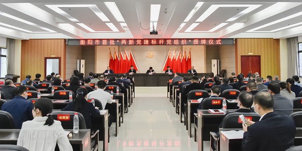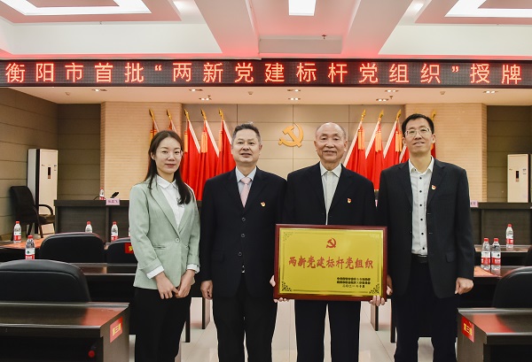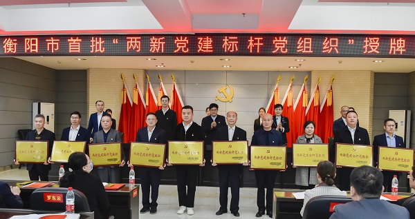 本网讯(通讯员 赵红深   摄影 李建华 )10月11日上午,衡阳市两新工委举行全市非公有制经济组织和社会组织首批 “党建标杆党组织”授牌仪式,市委组织部副部长、市委“两新”工委书记陈国辉出席并讲话。会上,新葡萄获“两新党建标杆党组织”授牌。新葡萄党委副书记李先聪上台接牌,陈国辉为新葡萄亲自授牌。这是新葡萄党委继获得“全市先进基层党组织”“ 衡阳市百千万‘艺术童伴’—留守儿童关爱工程最佳结对学校”等荣誉后再添殊荣。