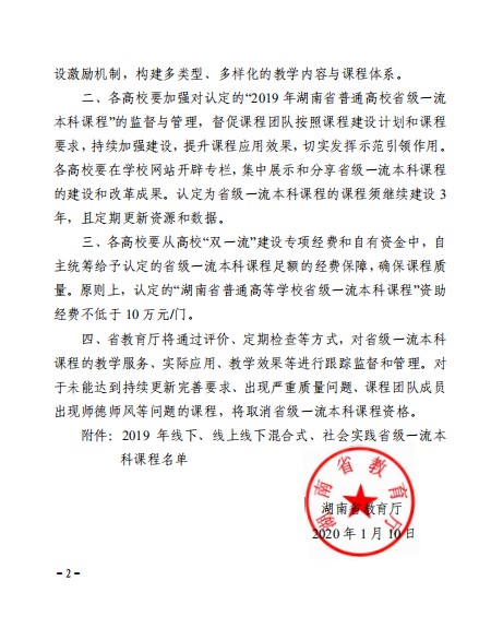 根据湖南省教育厅《关于开展2019年线下、线上线下混合式、社会实践省级一流本科课程认定的通知》(湘教通〔2019〕349号),交通运输工程学院积极响应,经先期建设并申报,我院申请的《材料力学》认定为省级线下一流本科课程(湘教通〔2020〕9 号)。