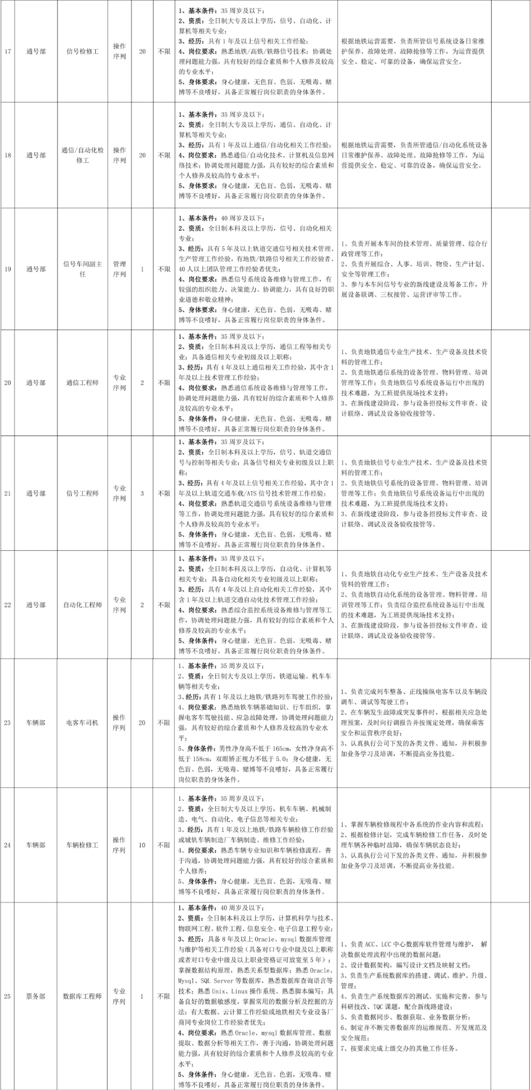 4.身高要求:考虑到公司对外服务形象的需要,站务类岗位和司机类岗位须对身高有要求,具体如下: