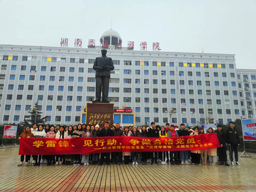 本网讯(通讯员罗朝勇 摄影赵孝锶)2019年3月8日下午,经济管理学院党总支在学校绿色文化广场开展“学雷锋、见行动,争做合格党员”主题党日活动。经济管理学院党总支书记宁恒、院长朱忠祥教授、副院长王冰教授及全院师生党员参加活动。活动由党总支副书记罗朝勇主持。 全体起立,伴随着“学习雷锋好榜样,忠于革命忠于党,爱恨分明不忘本,立场坚定斗志强……”的优美旋律,纵情合唱《学习雷锋好榜样》,以这种独特方式纪念毛泽东主席提出“向雷锋同志学习”56周年。 朱忠祥做了题为《学雷锋,见行动,做合格党员》的讲话,他强调,当代大学生要以雷锋精神为标尺,体现在行动上,落实在学业中,把自己的理想追求汇入到中华民族伟大复兴的宏伟进程,在实现中国梦的生动实践中放飞青春梦想,做忠诚干净担当的时代新人。 学生党员代表赵孝锶、学生代表刘君分别发言表示,作为一名大学生,就要热爱自己的学校,不断提高和完善自己,用行动来传承践行雷锋精神。 宁恒在讲话中指出,全院师生要在实践中深入体会雷锋精神的涵义,体验雷锋精神的意义,进一步推进校园精神文明建设。 宁恒指出,学习雷锋精神,就是要做到学习上锲而不舍、工作上勤奋努力、生活上艰苦朴素;就是要学习雷锋的“镙丝钉”精神,刻苦钻研,干一行爱一行;就是要学习雷锋听党话跟党走,服从组织安排、听从组织指挥、任劳任怨的大局意识;就是要学习雷锋勤俭节约、艰苦奋斗的作风精神;学习雷锋全心全意为人民服务、做好事不留名的奉献精神。 宁恒强调,全院师生要以习近平新时代中国特色社会主义思想为指导,认真贯彻全国全省教育大会精神,立足现实,苦干实干巧干,为全面推动新葡萄本科教学合格评估工作而奋发努力。 (责编:李建华)  |