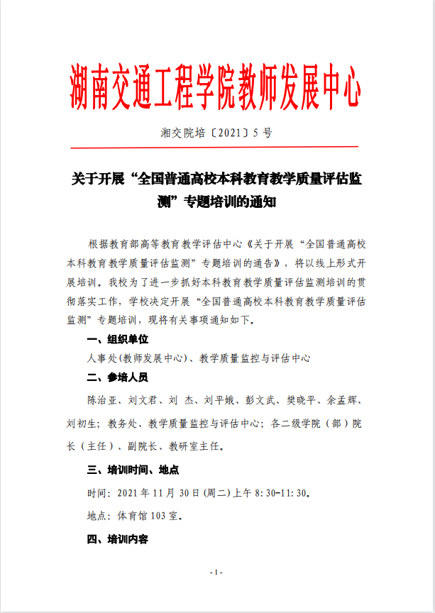 关于开展“全国普通高校本科教育教学质量评估监测”专题培训的通知