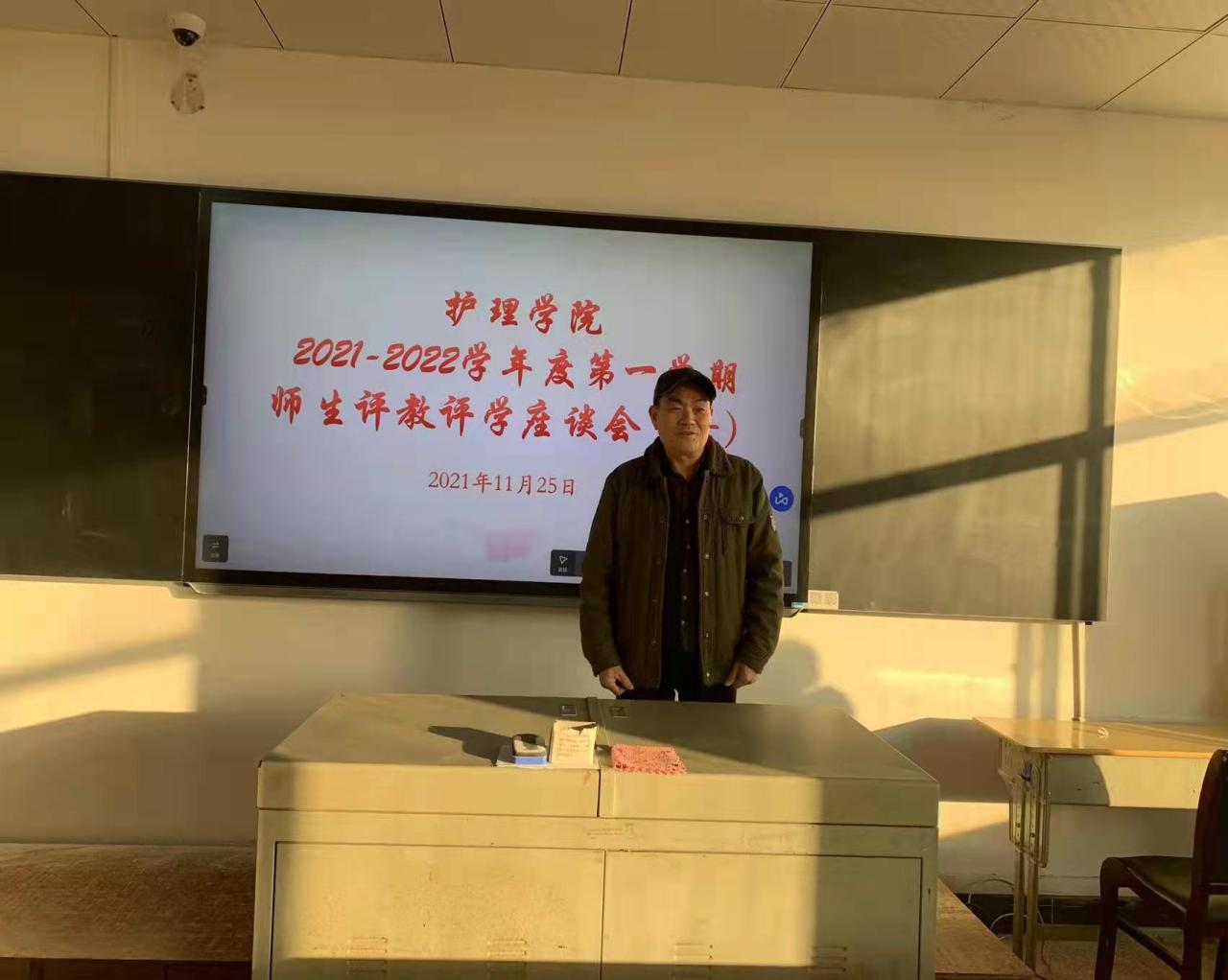 为稳步提高学院教学质量,融洽师生关系,使教学工作更上一个台阶,按照学院教学工作部署,11月25日下午16:30,护理学院在教学楼103、104、105教室分年级召开2021-2022学年度第一学期评教评学师生座谈会。学院行管干部、教师代表、各班学生代表参加座谈,会议由学院书记邓丽、副院长吴端生,副书记肖桂香分别在各教室主持。