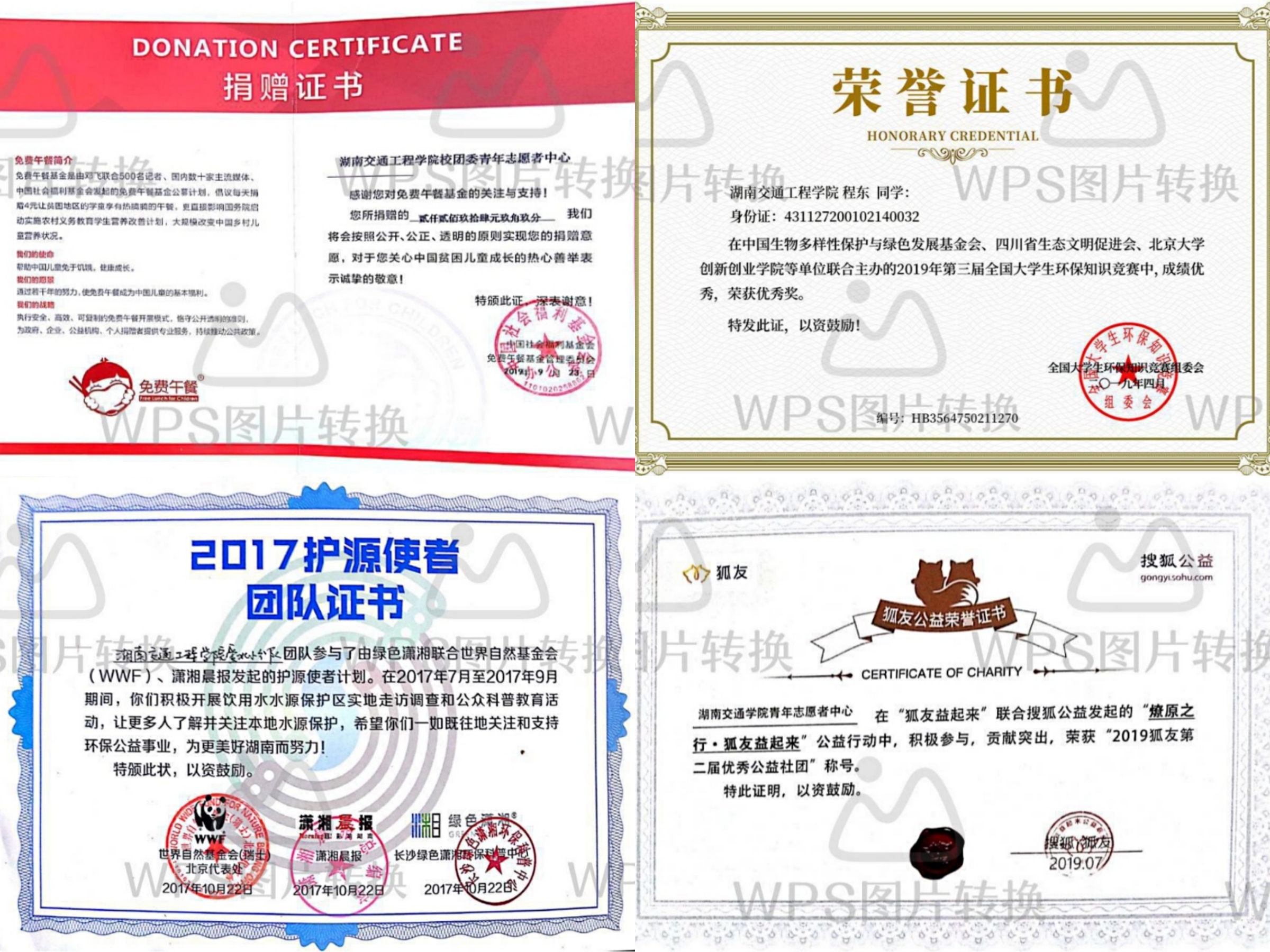 2017年新葡萄青年志愿者中心获“护源使者”团队证书和“护源使者”最佳行动力奖,2019年新葡萄青年志愿者中心获“2019狐友第二届优秀公益社团”、获“免费午餐大学生驿站”、校团委程东在第三届全国环保知识竞赛荣获优秀奖、青年志愿者中心三下乡团队获省委2019年三下乡表彰并通报、校团委组建团队参加第三届挑战杯大学生科技作品竞赛并荣获三等奖。