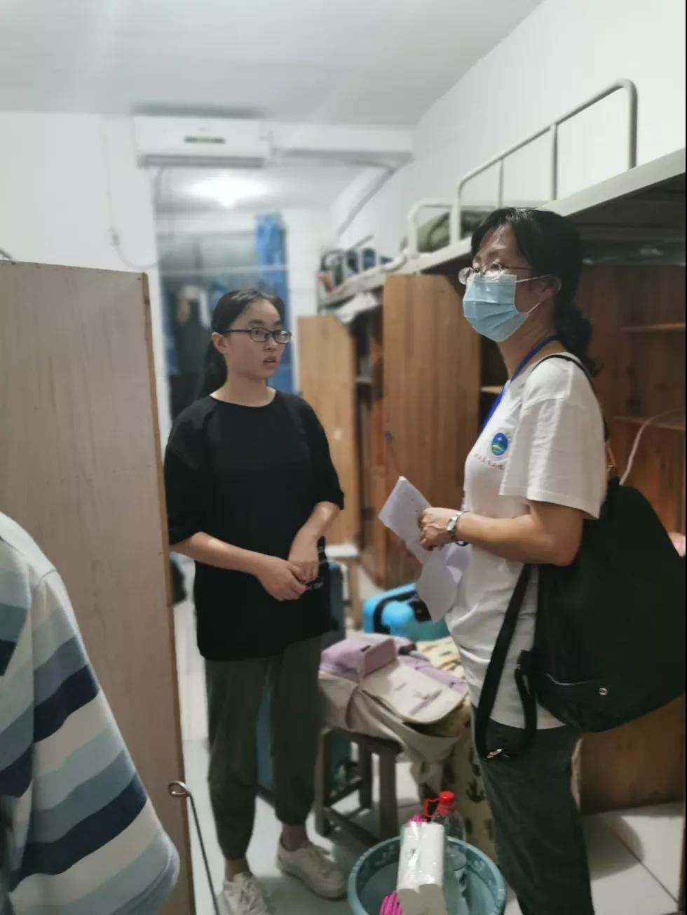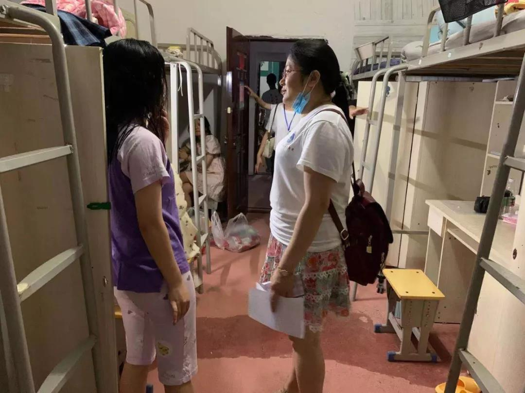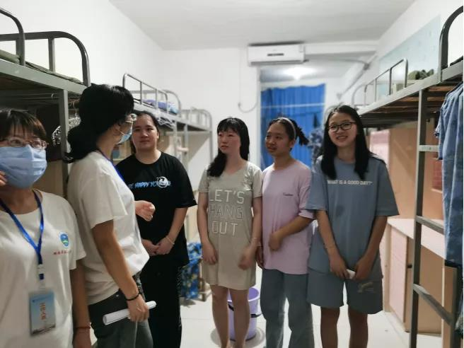 领导老师进入寝室后邓丽书记和肖桂香书记作为领导老师代表向住宿生了解了宿舍生活情况,询问同学们在住宿方面遇到的问题并给予了解决方法,同时对新生们进行了一系列仔细的问候。在问候以后,领导老师们叮咛新生们如果遇到问题一定要及时反映,同学之间要互相照应,同时要记得给家里报平安等。