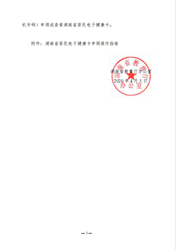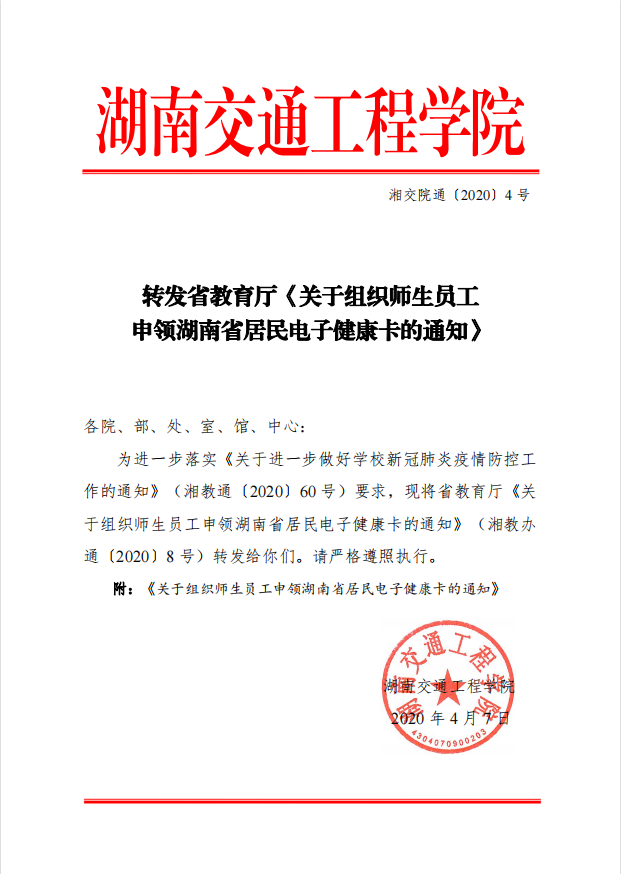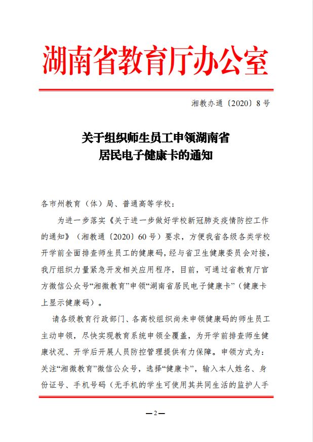 转发省教育厅《关于组织师生员工申领湖南省居民电子健康卡的通知》
