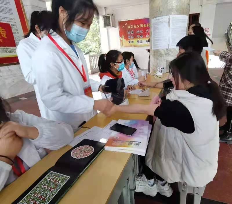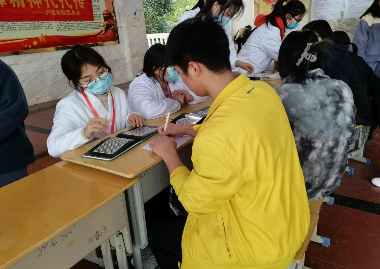 仁心如花,播撒着温暖和希望。志愿者们一早就到达活动地点,有序对场地进行布置活动过程中,前来接受义诊的同学们络绎不绝志愿者们积极的进行引导,热情的为他们服务志愿者们有条不紊地为老师、同学们进行测血压、测视力、检查色盲及色弱......同时康复治疗专业的同学们热心地为同学提供针灸、艾灸等志愿服务。