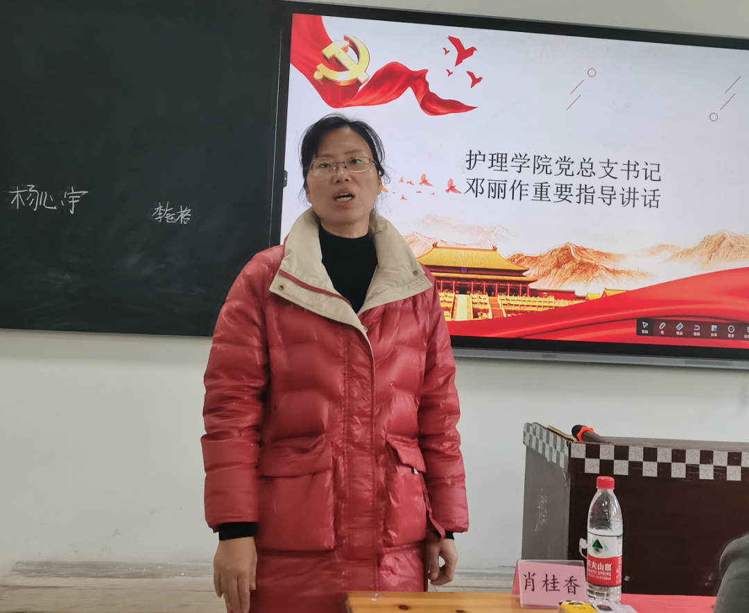 首先,邓丽书记就护理学院学生会的工作提出几点期望和要求,第一,学生干事要坚守初心,保存良好作风。第二,学生会成员要提高整体素质,找准定位。第三,学生会新干们的工作态度要端正,虚心学习,努力提升自己。