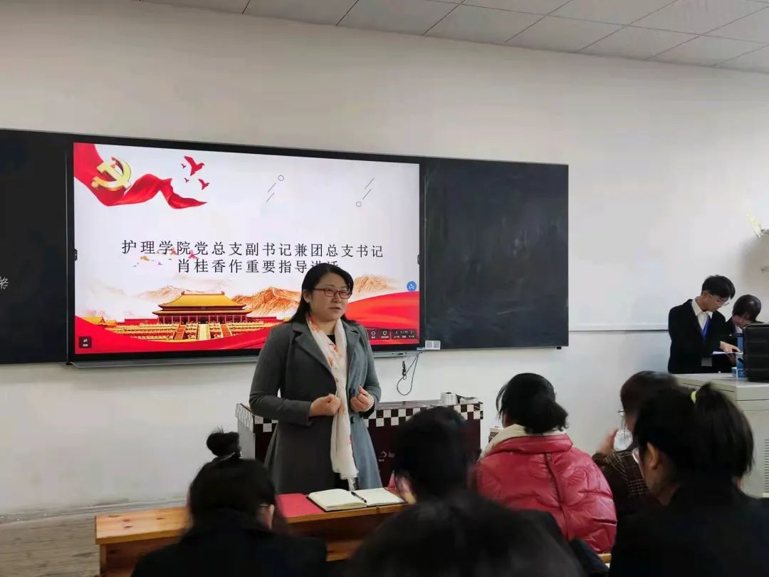 然后,肖书记对护理学院学生会的成员们提出了端正态度、处理工作和学习以及人际关系、并且要常怀感恩之心的要求。