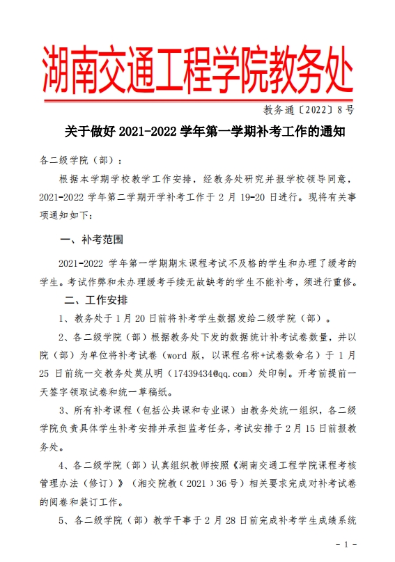 关于做好 2021-2022 学年第一学期补考工作的通知