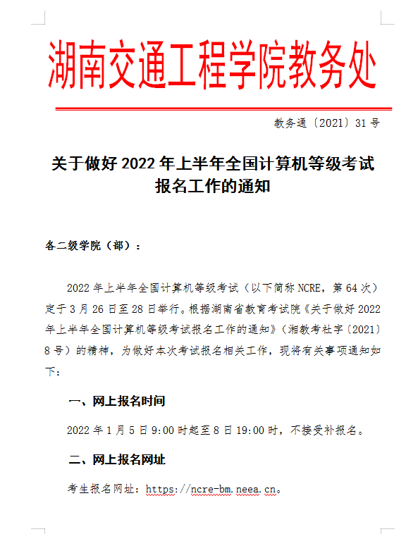 关于做好2022年上半年全国计算机等级考试 报名工作的通知