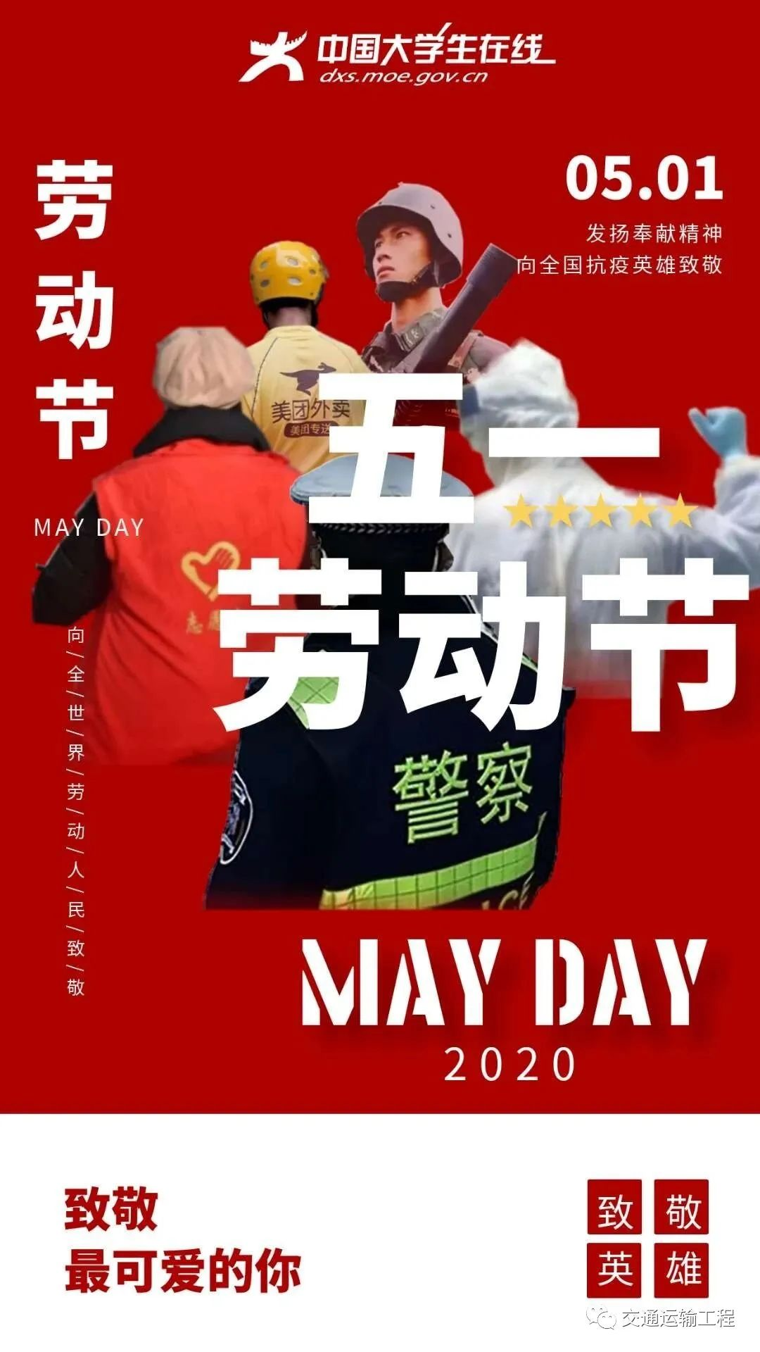 本网讯 通讯员(彭雨晴 李麦 何诗怡)伟大出自平凡,英雄来自人民。面对新中国成立以来在我国发生的传播速度最快、感染范围最广、防控难度最大的一次重大突发公共卫生事件,各行各业的劳动者不畏艰险,挺身而出,日夜奋战,无私奉献,同时间赛跑、与病魔较量,用实际行动和担当作为唱响了一曲慷慨激越、震撼人心的劳动者之歌。他们中,有救死扶伤、大爱无疆的医务工作者,有不辞辛苦、日夜坚守的社区工作者,有恪尽职守、保驾护航的公安干警,有勇敢逆行、挥汗如雨的建筑工人,有马不停蹄、朴实勤奋的快递小哥,有披星戴月、任劳任怨的环卫工人和广大志愿者……正如习近平总书记所指出的,千千万万劳动群众在各自岗位上埋头苦干、默默奉献,汇聚起了战胜疫情的强大力量。让我们一起致敬这些平凡却伟大的劳动者们!