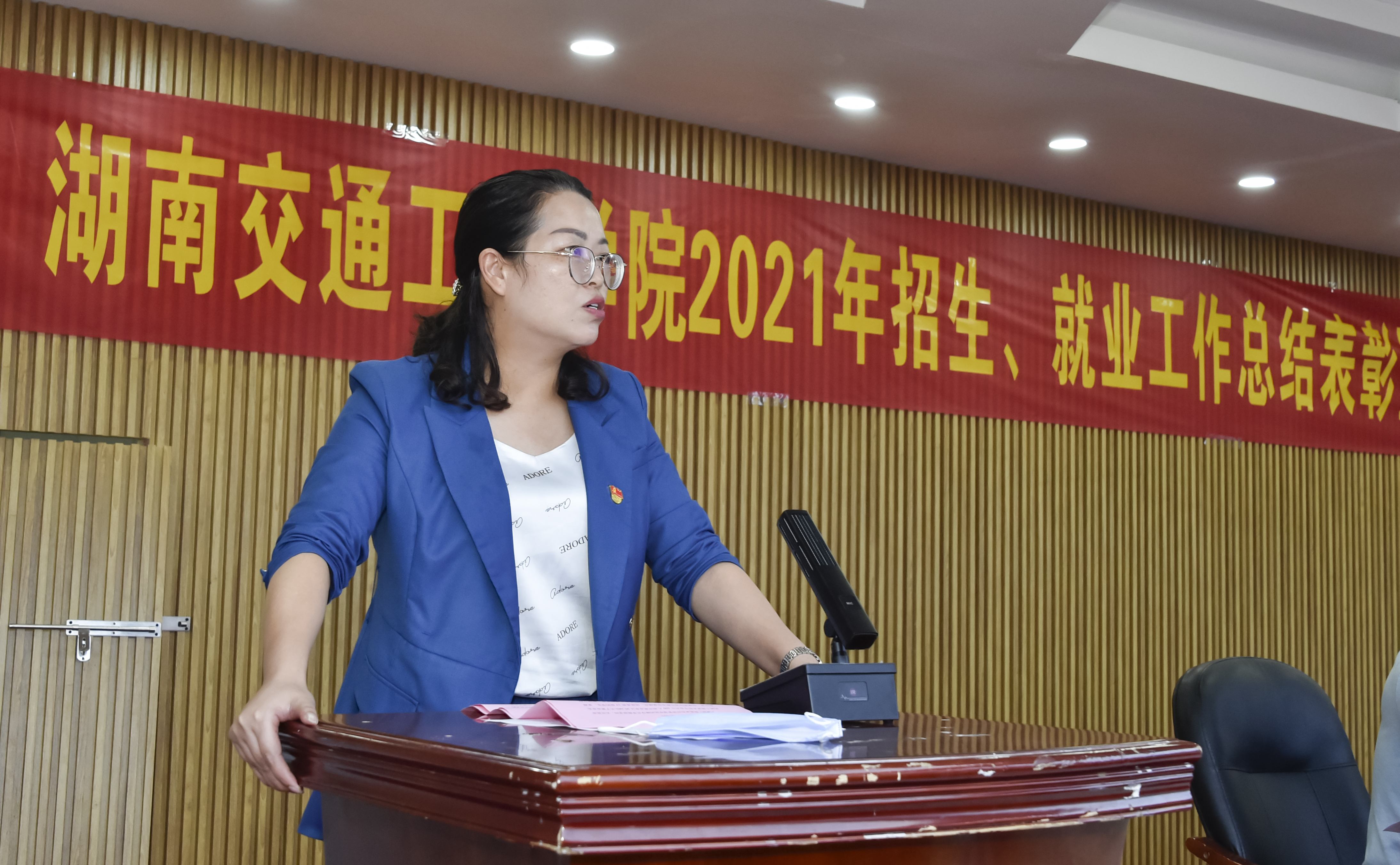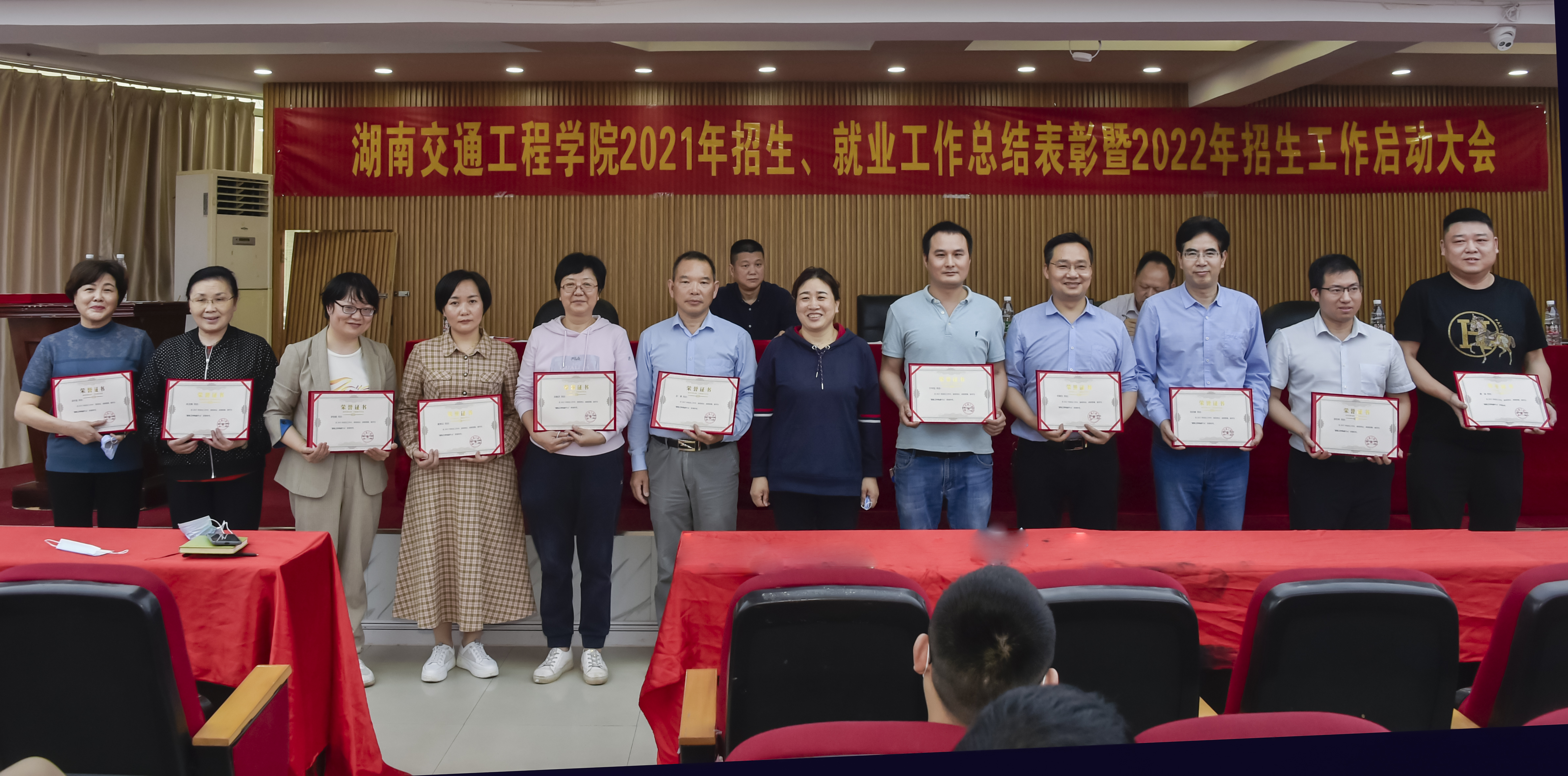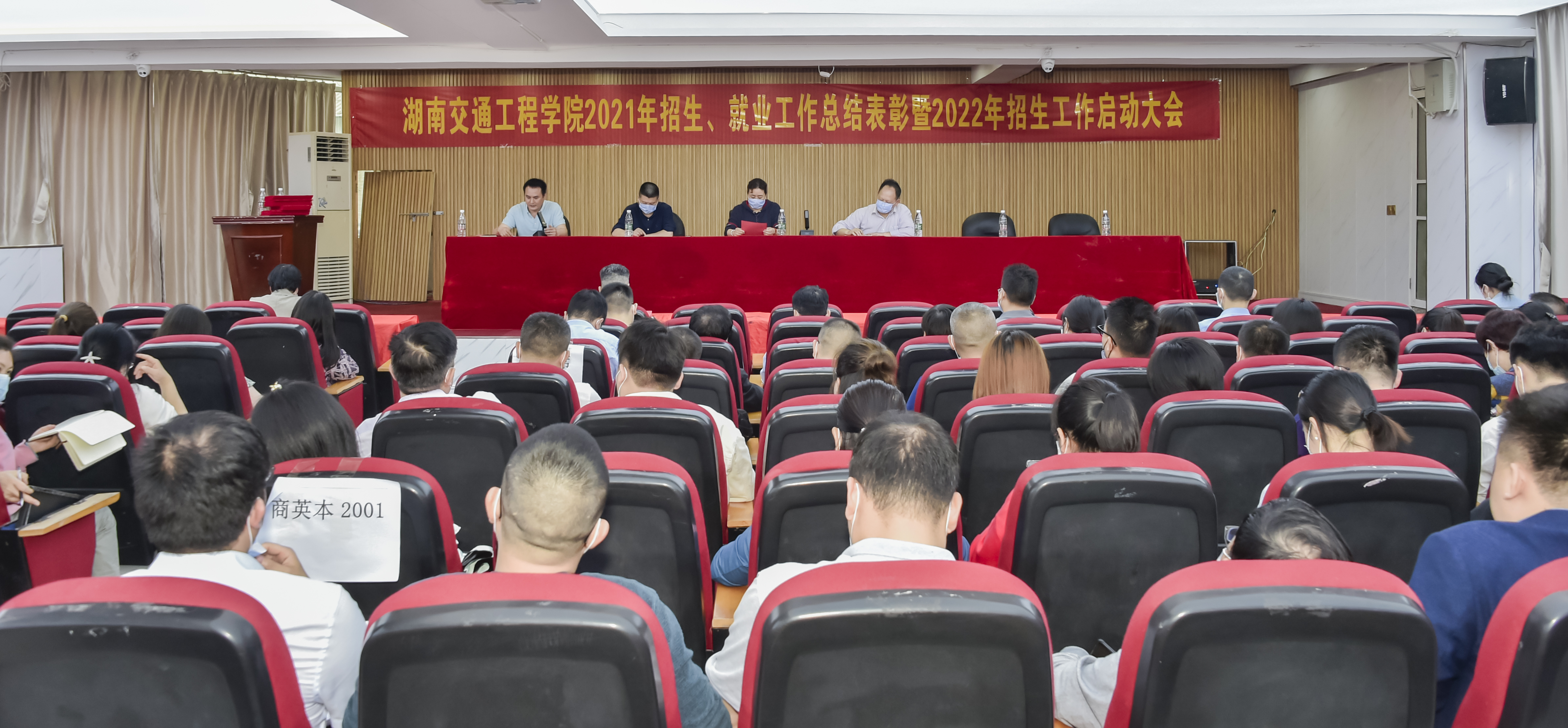 本网讯(记者 赵红深 摄影 李建华)5月26日中午,学校2021年招生就业工作总结表彰暨2022年工作启动大会在体育馆101会议室召开。副董事长刘秋菊、纪委书记刘毅、副校长余孟辉,招生和就业工作领导小组成员、二级学院党政负责人、各项先进获得者、全体辅导员和毕业班班主任参加会议。大会由招生就业处负责人宁平阳主持。