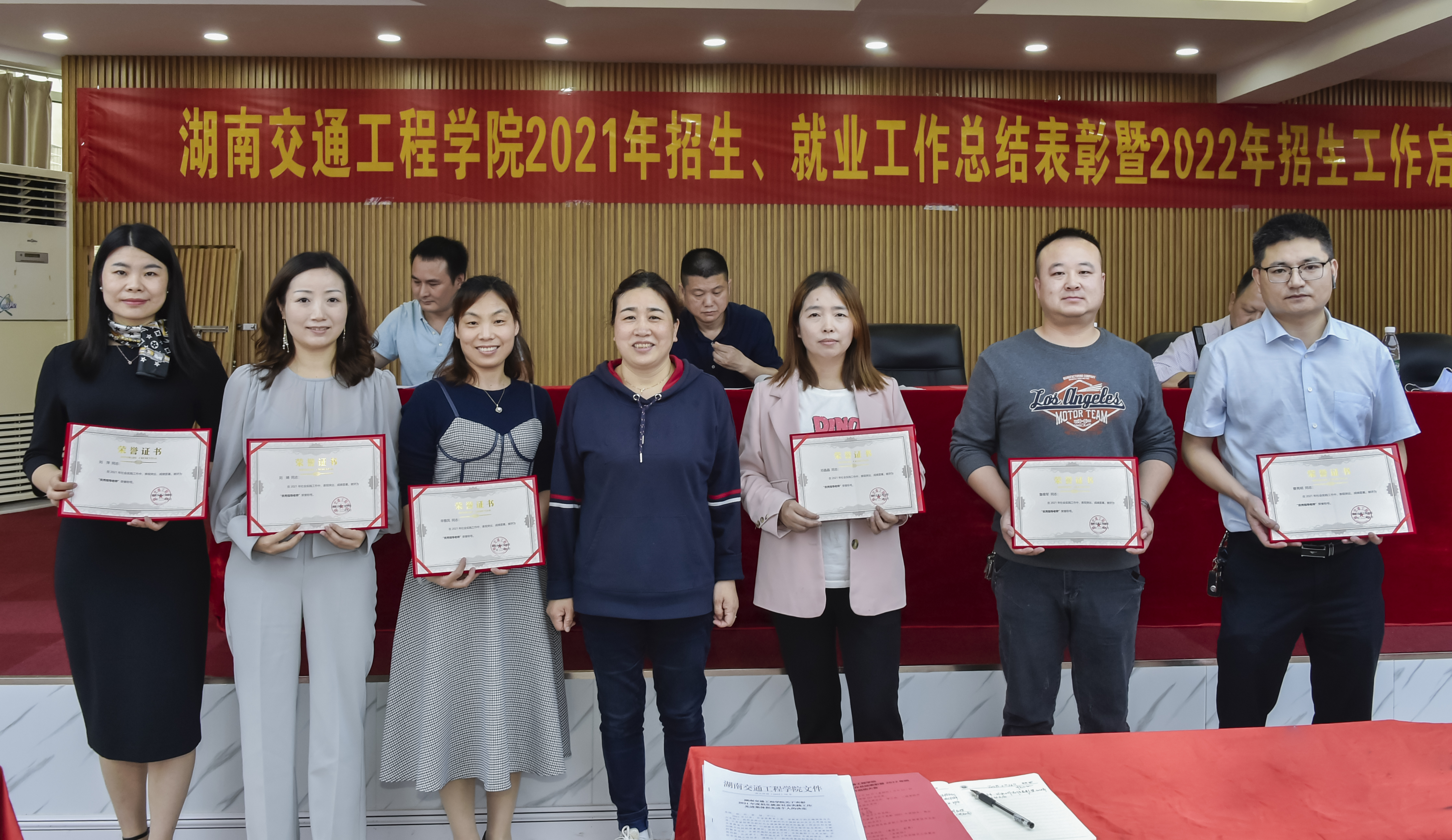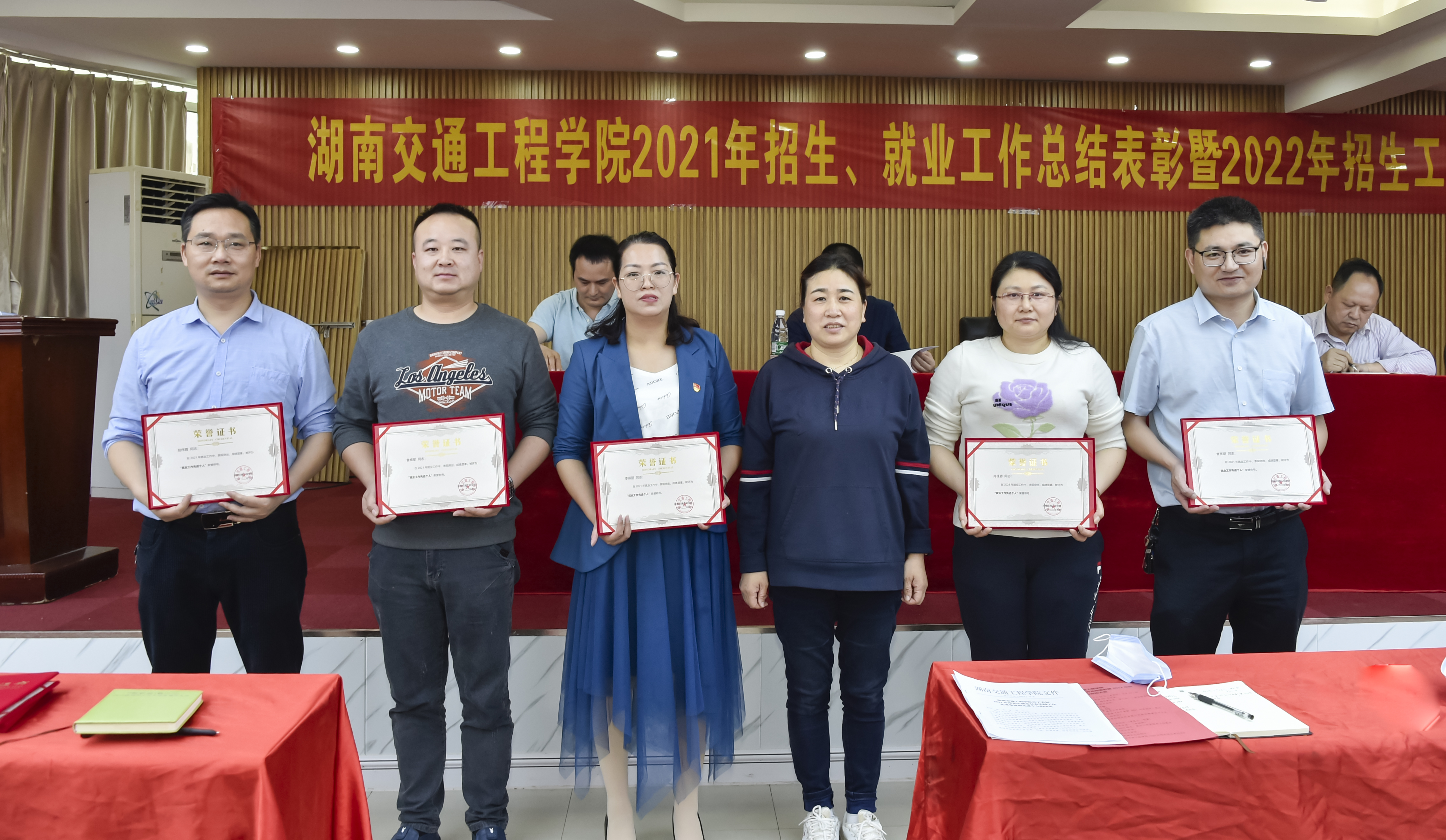 余孟辉宣读了“关于表彰2021年度招生就业社会实践工作先进集体和先进个人的决定”。授予招生就业处、经济管理学院2021年度招生工作先进集体,授予机电工程学院2021年度就业工作先进集体荣誉称号;授予何美生等12名老师2021年度招生工作先进个人,授予李燕丽等5人2021年度就业工作先进个人,授予刘萍等6人社会实践工作优秀指导老师荣誉称号;授予罗磊等100名学生2021年度社会实践活动优秀个人荣誉称号。刘秋菊为各项先进集体和先进个人颁奖。