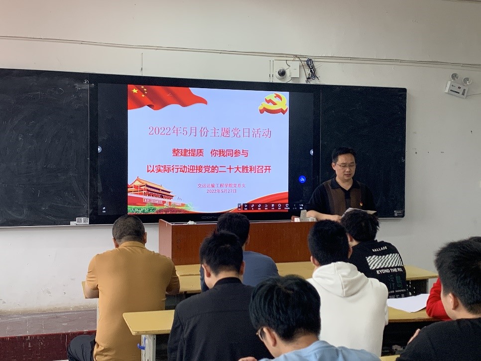 20225271330交通运输工程学院党总支在机电楼512教室开展 “整体提质,你我同参与”的主题党日活动。本次活动由学生党支部书记王刚主持。