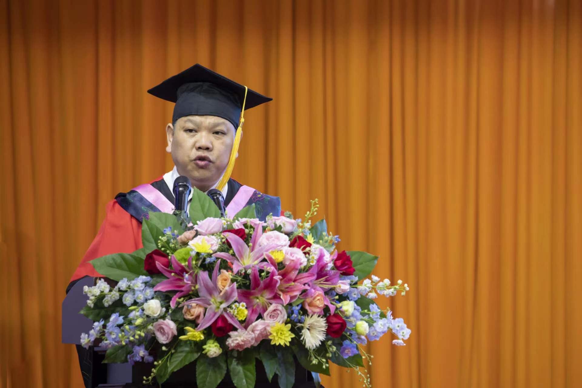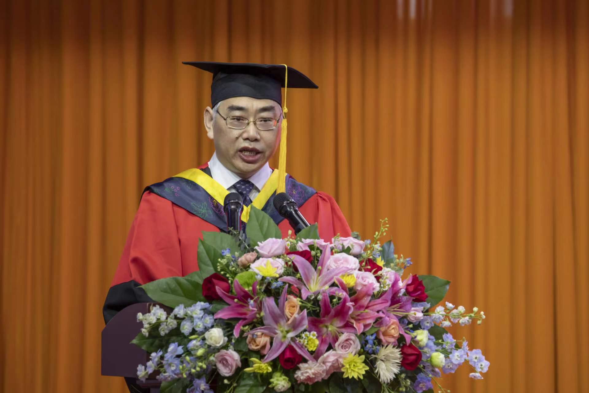 千川江海阔,风好正扬帆。“今天,对于在座的各位,是一生中值得永远纪念的日子,也是学校与父母为你骄傲的时光。”校学位评定委员会主席、校长陈治亚教授作了题为“历尽千帆,归来仍是少年”的毕业致辞。他代表学校15000余师生向2022届毕业生表达热烈的祝贺!同时通过同学们转达对辛勤抚育同学们的父母表示衷心的感谢!离别之际,他对毕业生在步入比学校更为纷繁复杂的社会后要努力的几个方面进行了嘱咐。一是学会三个对话,二是了解和掌握三个规律,三是用好四种力。学会三个对话:一要学会与自己对话,与自己对话是一种能力;二要学会与他人对话,与他人对话是一门艺术;三要学会与自然对话,与自然对话要勤于考证。了解并不断掌握三个规律:一是人性规律,人性,是大自然对人这种智慧生命的原始设定,为人所必有,也为人所特有。同学们作为未来,要理解、懂得并运用人性的本质规律。二是社会运行规律,同学们都是社会主义接班人,要有坚定的理想和信念,做社会主义事业可靠接班人。三是自然规律,要懂规矩、守规矩、用规矩,符合规律,顺应自然;要做到不做作、不拘束、不呆板、不勉强,轻松自如,自然而然。用好四种力:一是欲望之力,要管理好自己的欲望,不要让“欲”火烧毁了自己;要运用好欲望之力,在公共规则下驱导自己。二是兴趣之力,兴趣是最好的老师,有了兴趣可以事半功倍,有了兴趣让我们产生持续学习和不断探索的动力。三是自然之力,把自然干的事交给自然,干自己该干的事,掌握自然规律,运用好自然之力。四是外力与合力,注意作用力与反作用力,不要在一棵树上吊死,你怎样待人,人就怎样待你,不要以为自己高明,世上最大的傻子就是把别人当傻子的人。他祝愿同学们历尽千帆,归来仍是少年。校长祝愿各位同学怀揣理想,行之于途而应于心,奔赴各自的星辰大海!