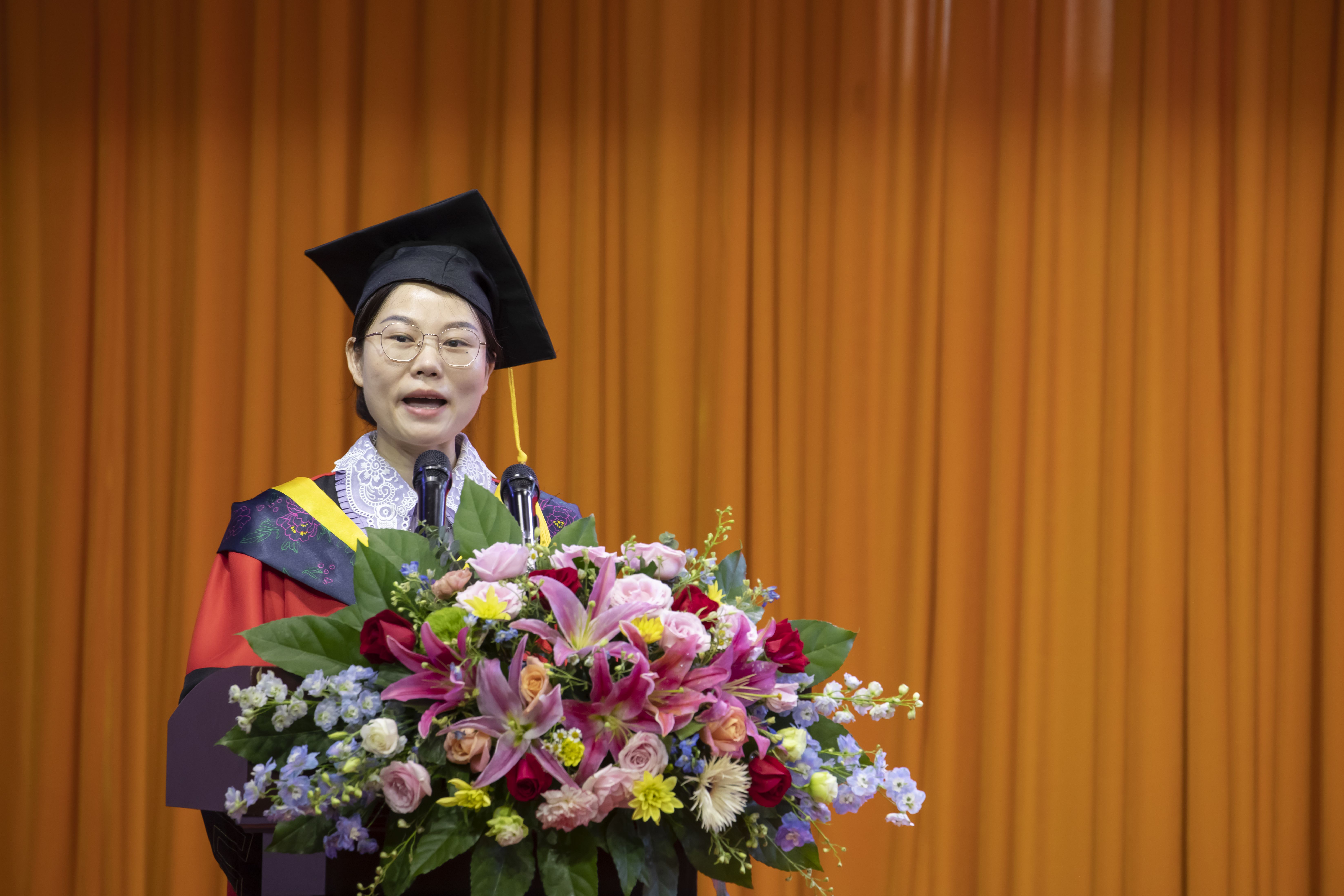 四年师友昨日成追忆,千里之行今朝正起航。教师代表交通运输工程学院王怡老师为毕业生寄语。她希望同学们带着母校诚挚的祝福和殷切的期望,以从容的步伐踏上人生新的征程。以“为学心难满”的追求,不断学习新知识、新技术,为祖国建设添砖加瓦;以“强学而力行”的坚持,在实践中学真知、悟真谛,加强磨练、增长本领。
