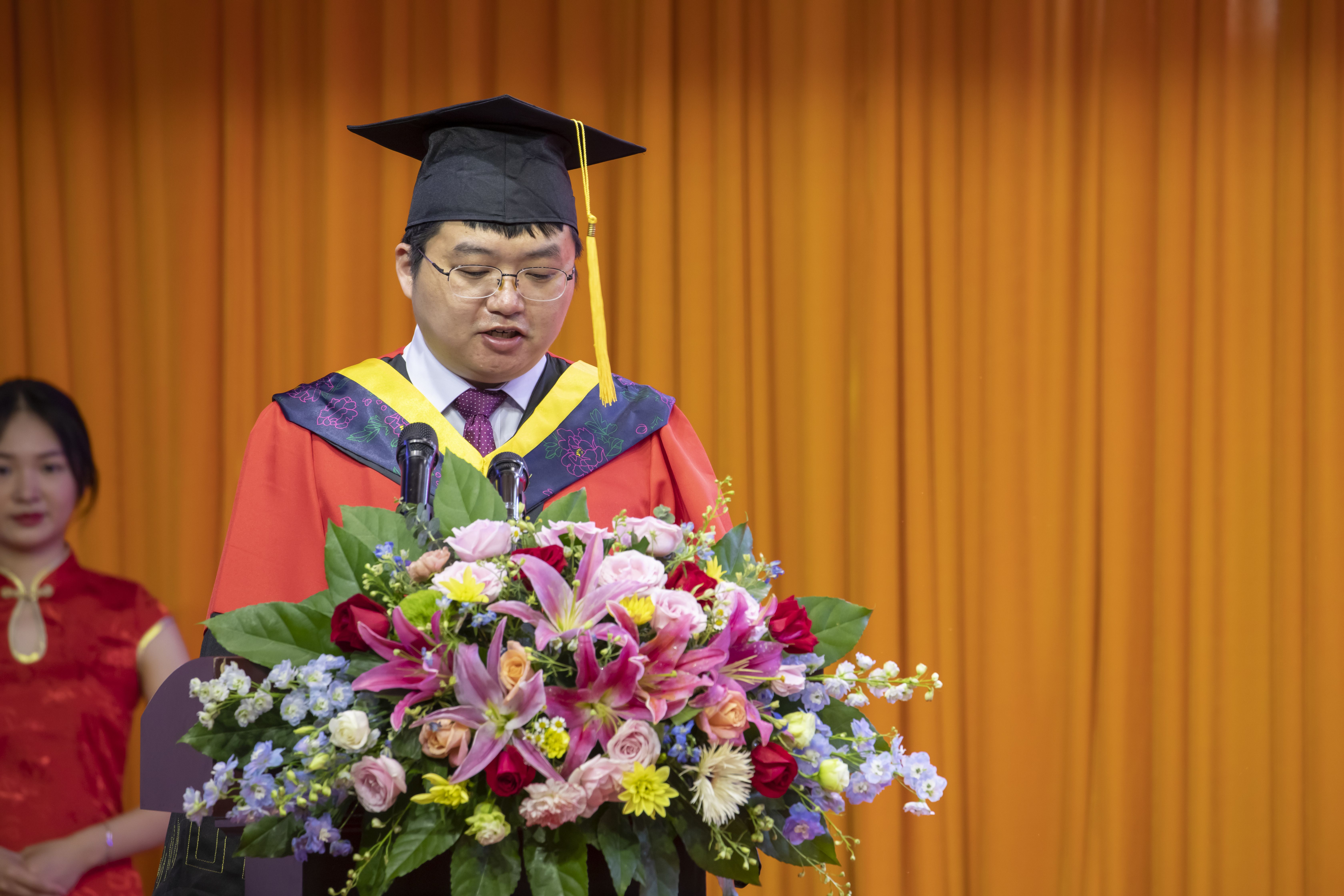 毕业生代表机电工程学院机电本1801班喻煜烽致毕业感言,“今朝毕业,不诉离伤,他日重逢,各领风骚”。他深情感恩母校的悉心培育和师长们的谆谆教诲,回顾了自己在交通工程学院走过的4年求学之路;表示今后将牢记母校“厚德、善思、强能、笃行”的校训,心怀“国之大者”,勇担时代重任,努力成长为一名有理想、敢担当、能吃苦、肯奋斗的新时代好青年,奔赴祖国最需要的地方去施展抱负、建功立业。