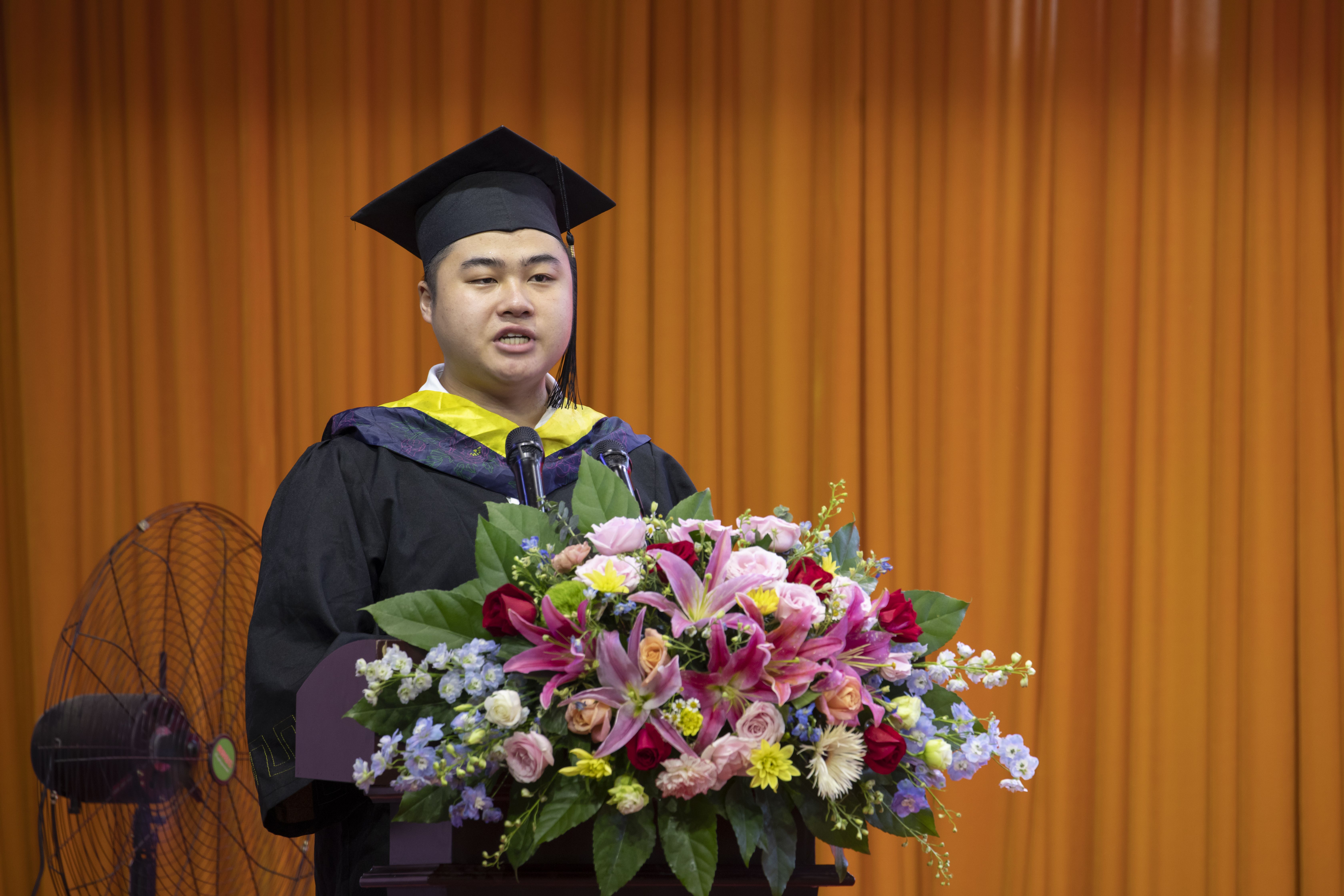▲毕业生代表机电工程学院喻煜烽致毕业感言