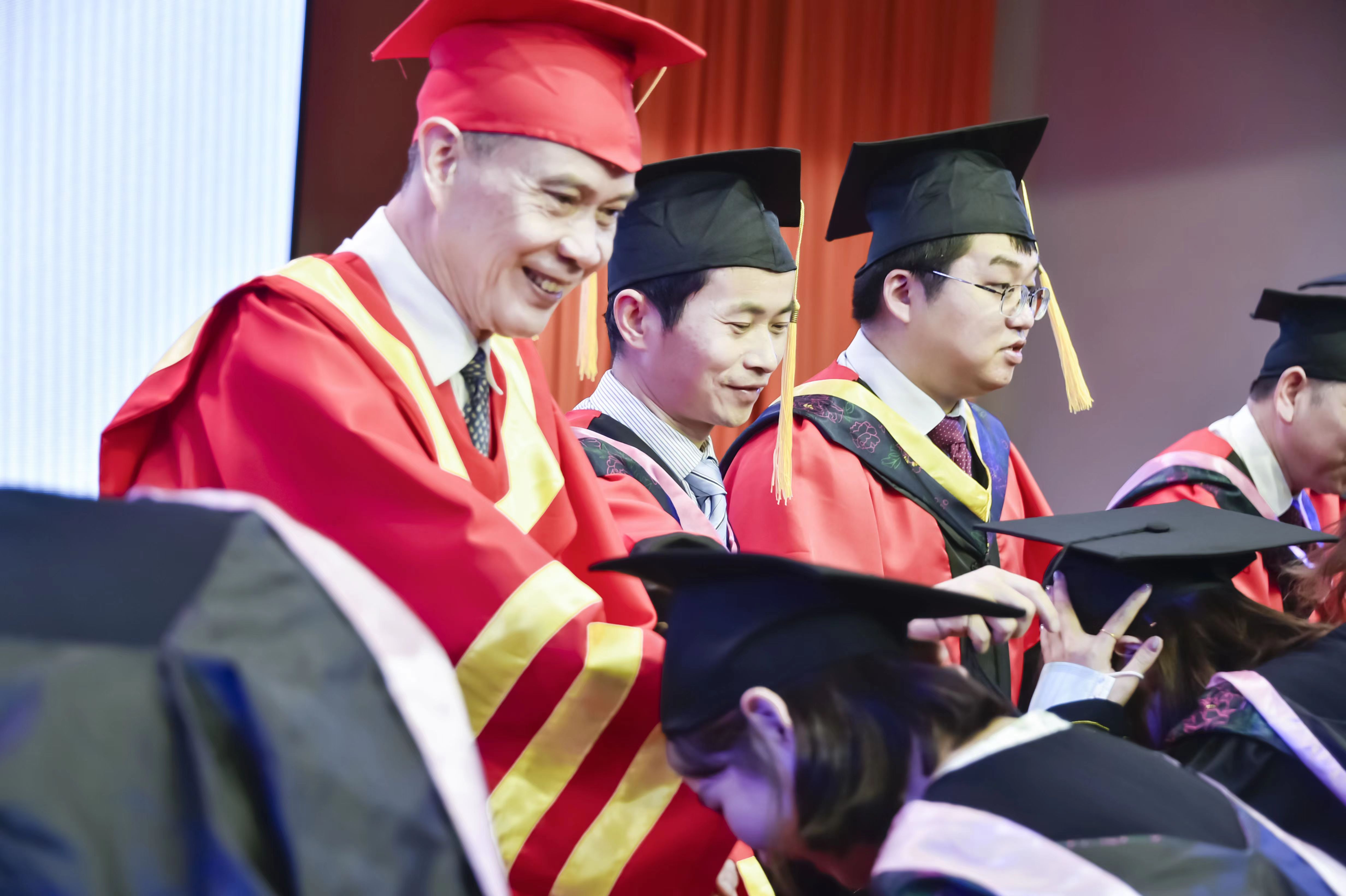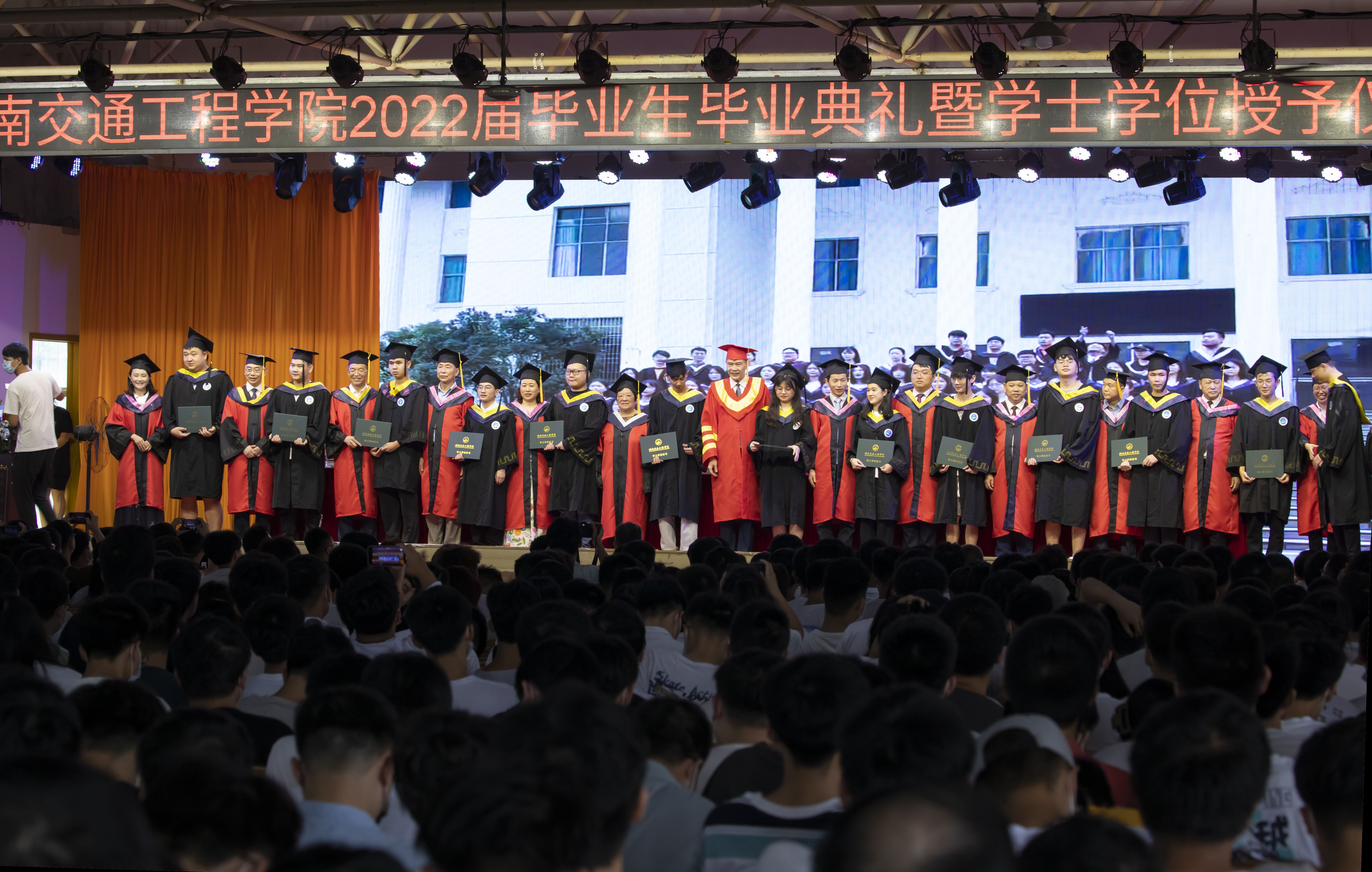 在庄严的学位授予仪式上,2022届毕业生们身着学士服,依次走上主席台;主席台上主礼教授们为获得学士学位的学生代表拨正流苏,颁发学士学位证书,并亲切握手,逐一合影记录难忘的时刻,将毕业祝福传递到每位同学心中。