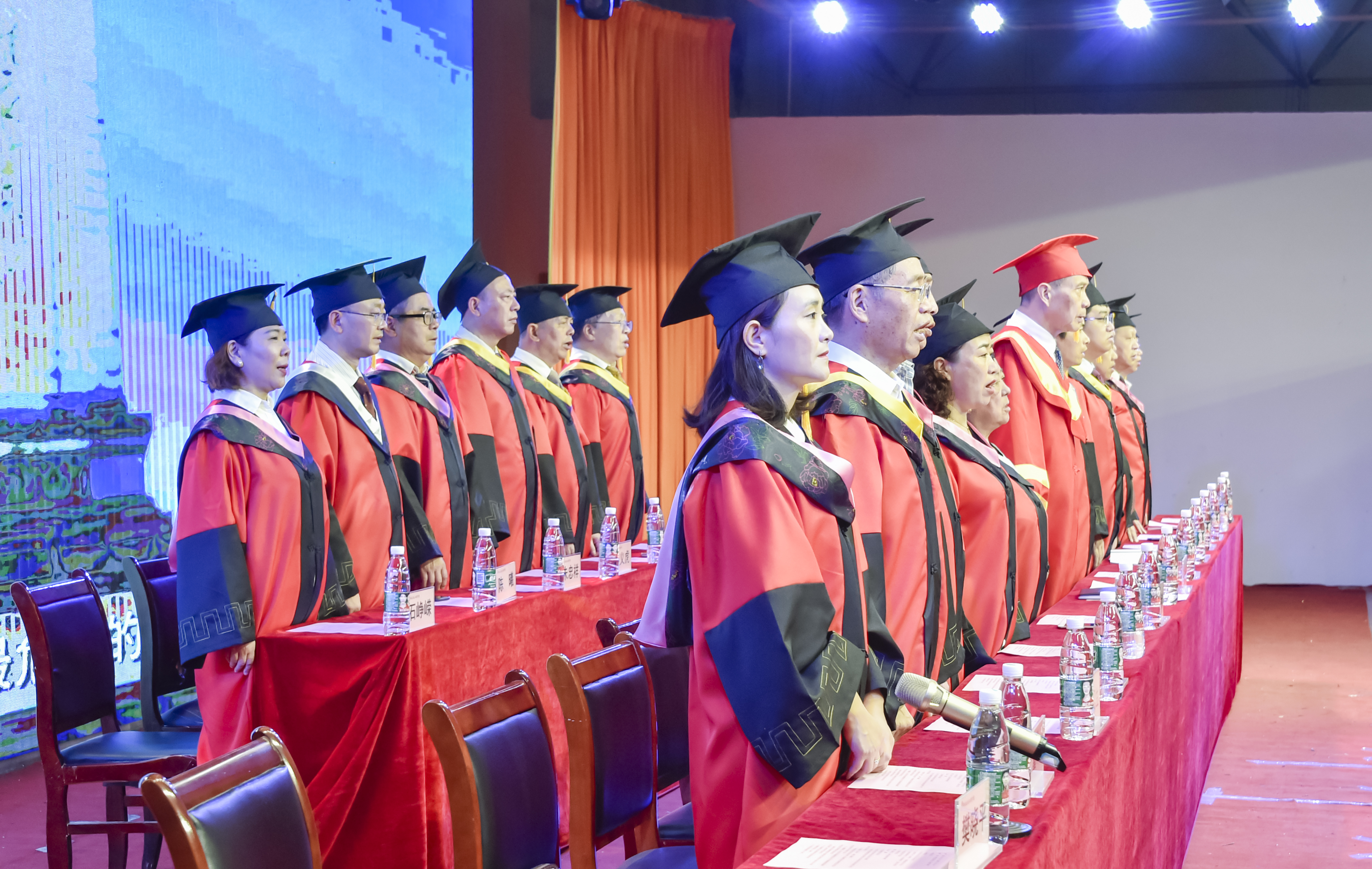 在热烈掌声中,校长陈治亚、党委书记刘文君,副董事长、执行校长刘杰,名誉校长刘平娥、副董事长刘秋菊、常务副校长彭文武、党委副书记李先聪、纪委书记刘毅,副校长刘初生、樊晓平、余孟辉,董事董晔卉、党委委员邓丽,交通运输工程学院院长罗迎社、机电工程学院院长吴义虎、电气与信息工程学院院长杨兵初、经济管理学院院长朱忠祥、护理学院院长陈熙、人文与艺术学院院长石峥嵘等19位领导和主礼教授身着导师服步入主席台就坐。