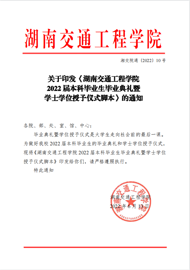 关于印发《新葡萄8883官网AMG官网2022 届本科毕业生毕业典礼暨学士学位授予仪式脚本》的通知