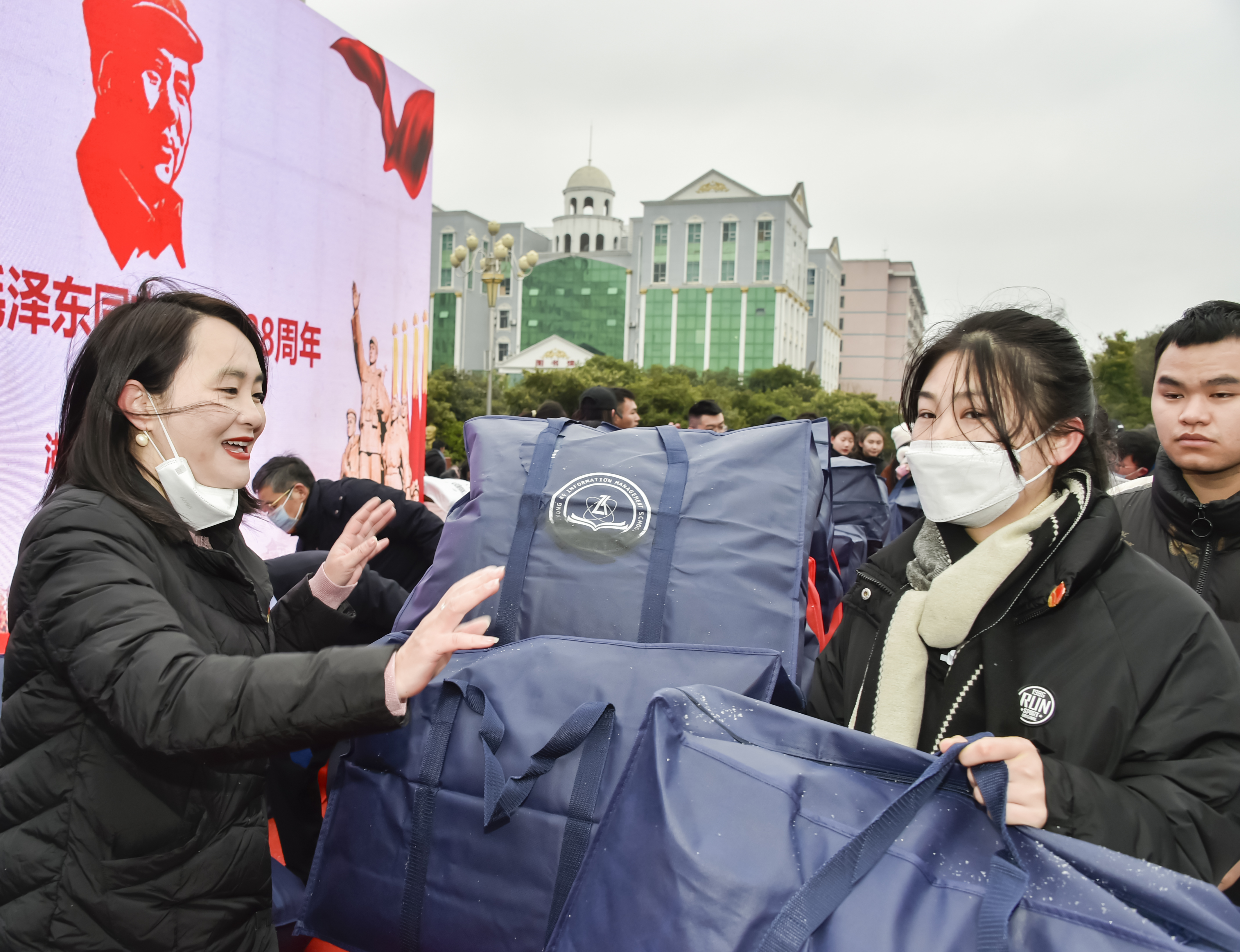 随着《爱的奉献》音乐的响起,受助学生排起了领助棉衣棉被的长龙队伍,为纪念毛泽东同志诞辰128周年纪念活动增添了爱的氛围和社会情怀场景。董事长刘福生、党委书记刘文君、执行校长刘杰、名誉校长刘平娥、党委副书记李先聪、常务副校长彭文武、副校长刘初生、余孟辉,校董事董晔卉等校领导为受助学生一一发放棉衣棉被。