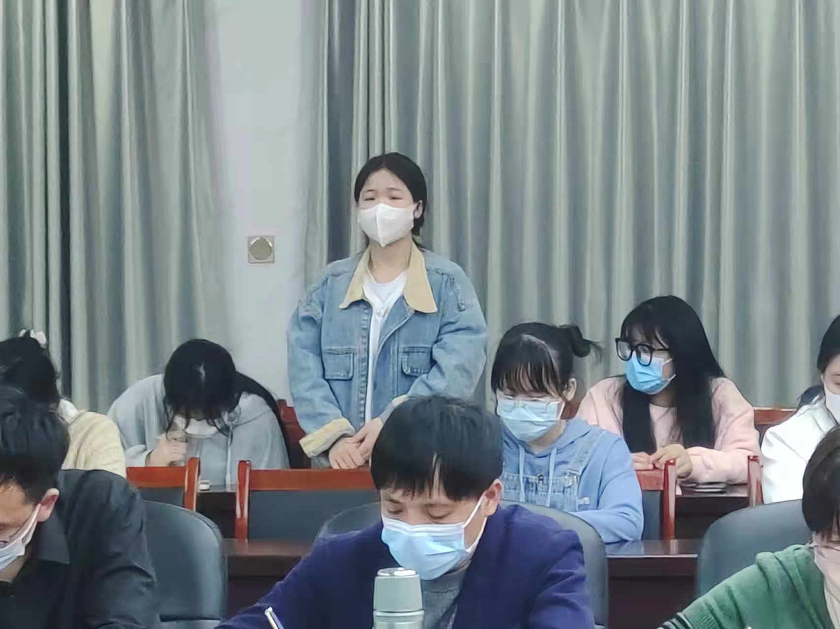 最后,余校长充分肯定了护理学院的学生工作,对护理学院积极参与疫情防控工作的志愿者表示感谢。针对同学们提出的问题,表示能解决的一定解决,暂不能解决的一定说明原因,限时解决。同时期望同学们在专业学习和行为习惯上不断加强,既要有专业技能、职业技能,也要有道德技能。要求同学们自觉遵守学校各项疫情防控要求,积极配合各项管理措施,共同守护好校园平安健康。