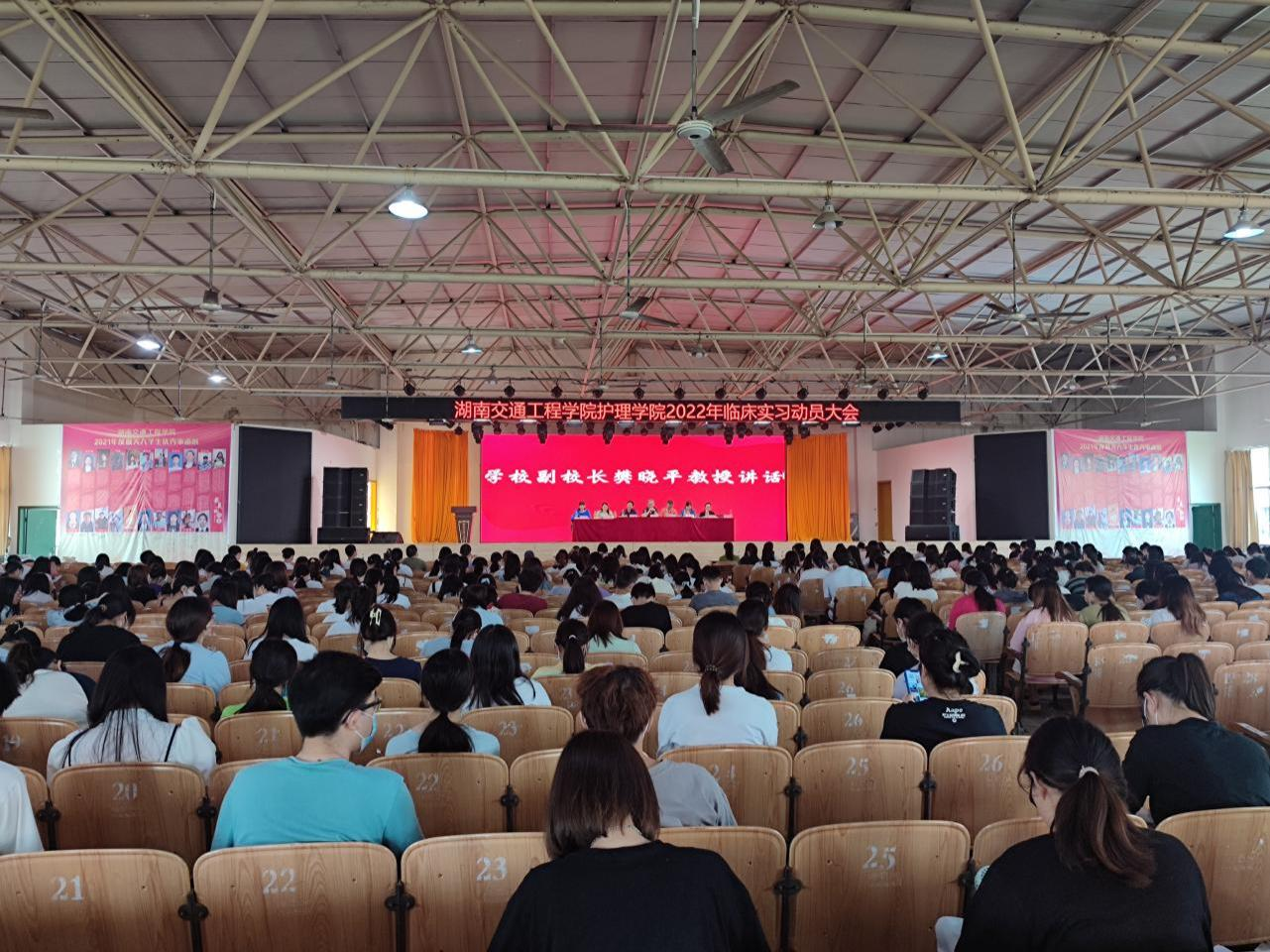护理学院为加强学生实习管理,于2022年5月9日上午在学校大学生活动中心召开2022年临床实习动员大会。参加此次会议的有学校副校长樊晓平,教务处曹中一,护理学院院长陈熙、党总支书记邓丽、实习专干老师万灵辉,以及护理学院老师、辅导员、2023届全体毕业生。本次会议由肖桂香副书记主持。
