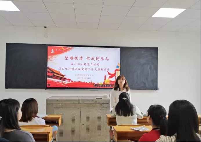 为以实际行动迎接党的二十大的顺利召开,护理学院党总支于5月28日上午在教学楼104教室召开了以“整建提质,你我同参与”为主题的五月份主题党日活动。参加此次会议的有护理学院党总支书记邓丽、团总支书记兼党总支副书记肖桂香、教工党支部书记周艳平、学生党支部书记贺九芳、14栋临时党支部书记刘梯、全体教师、学生党员。