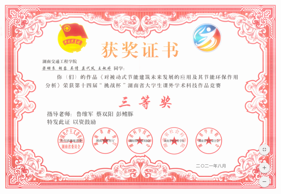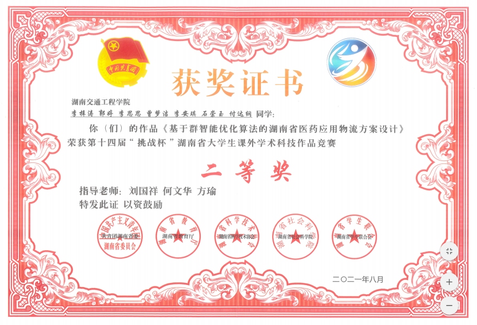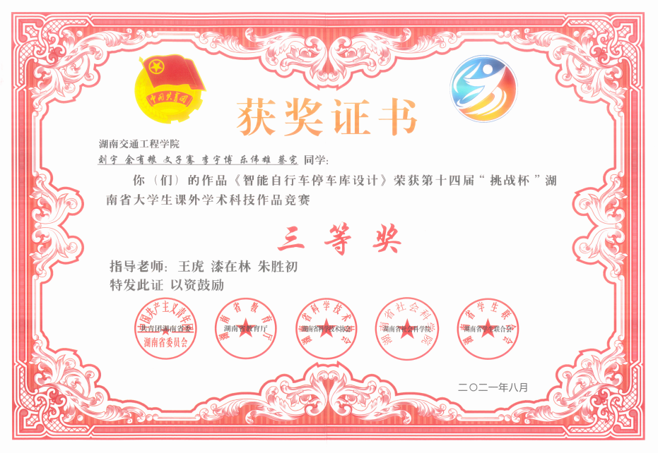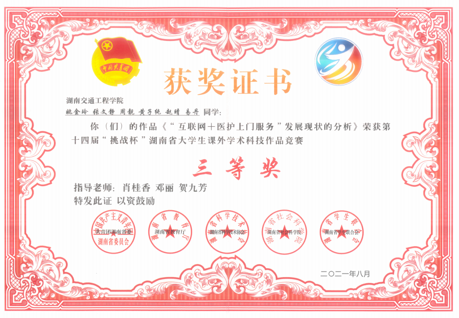新葡萄获得2021年第十四届“挑战杯“湖南省大学生课外学术科技作品竞赛5个奖项